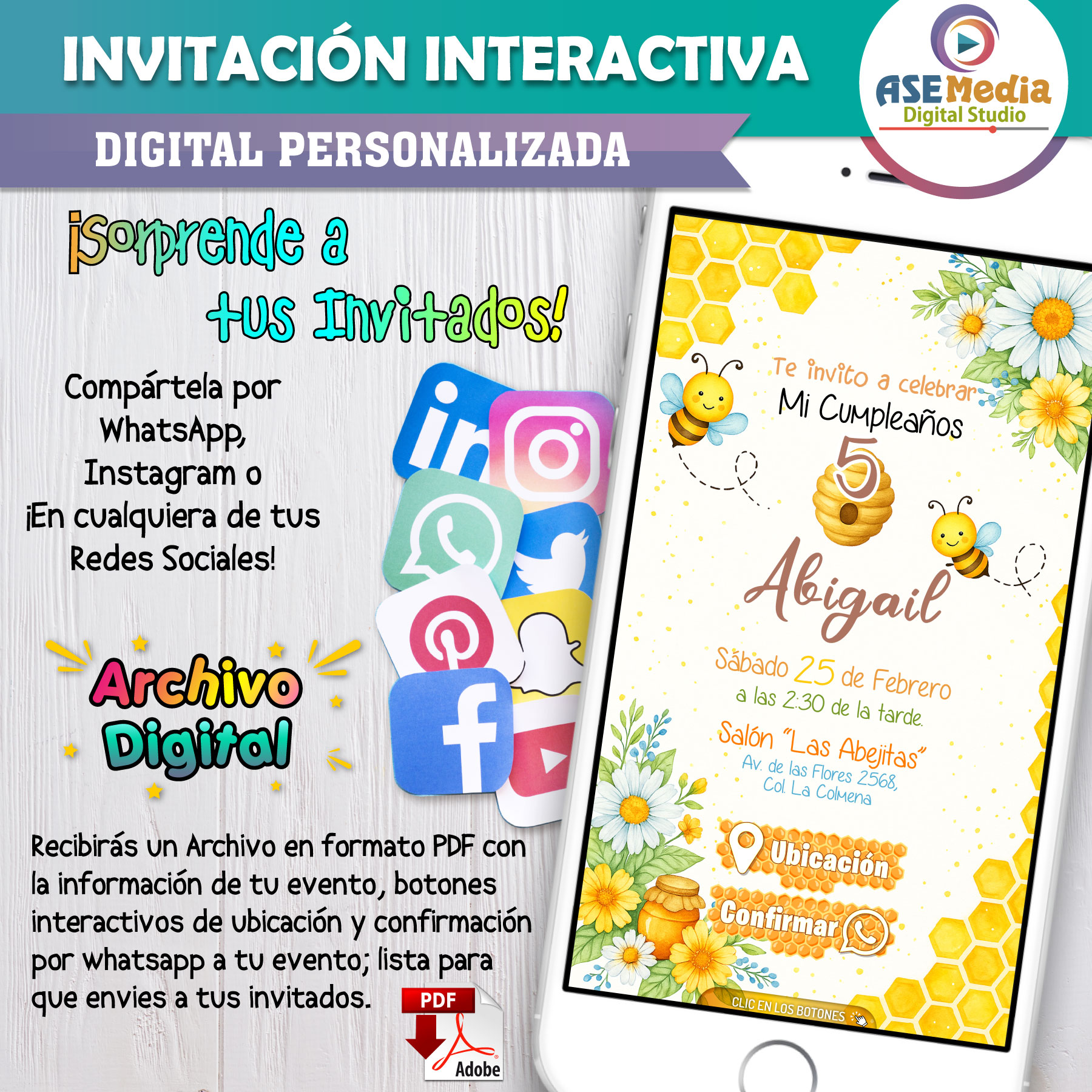 Abejitas- Invitación Interactiva de Cumpleaños para WhatsApp