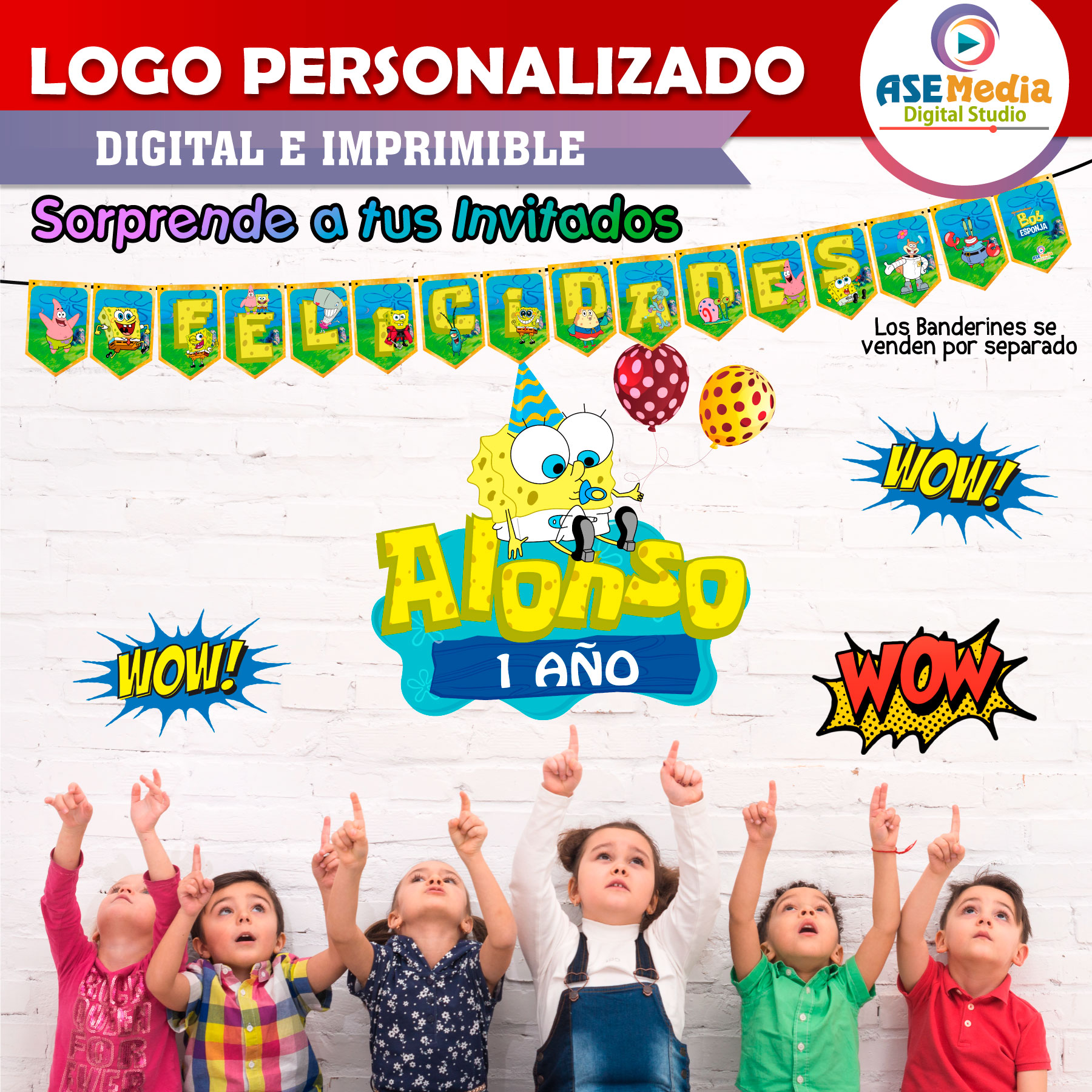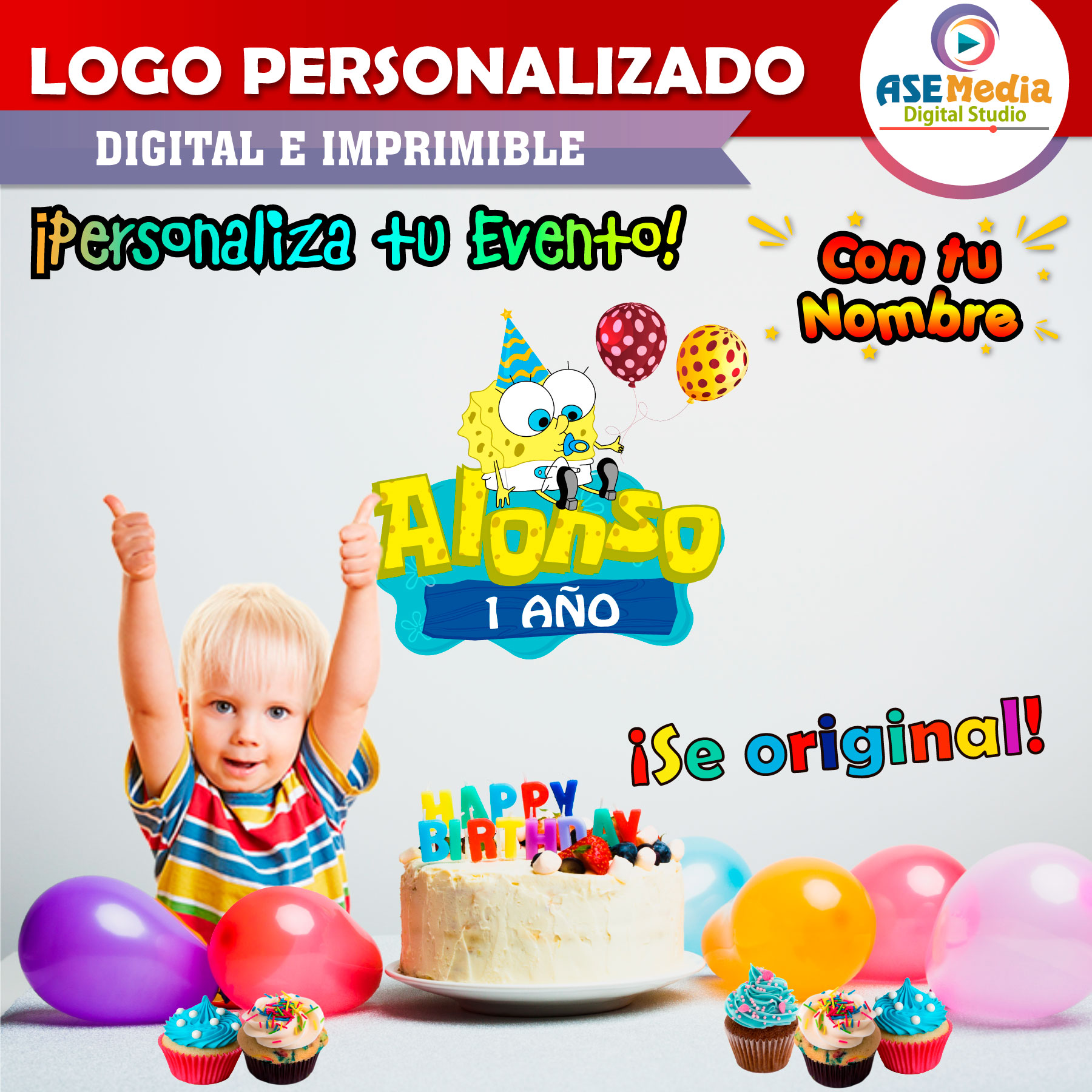 🔤 Logo digital personalizado con nombre y edad del festejado.
