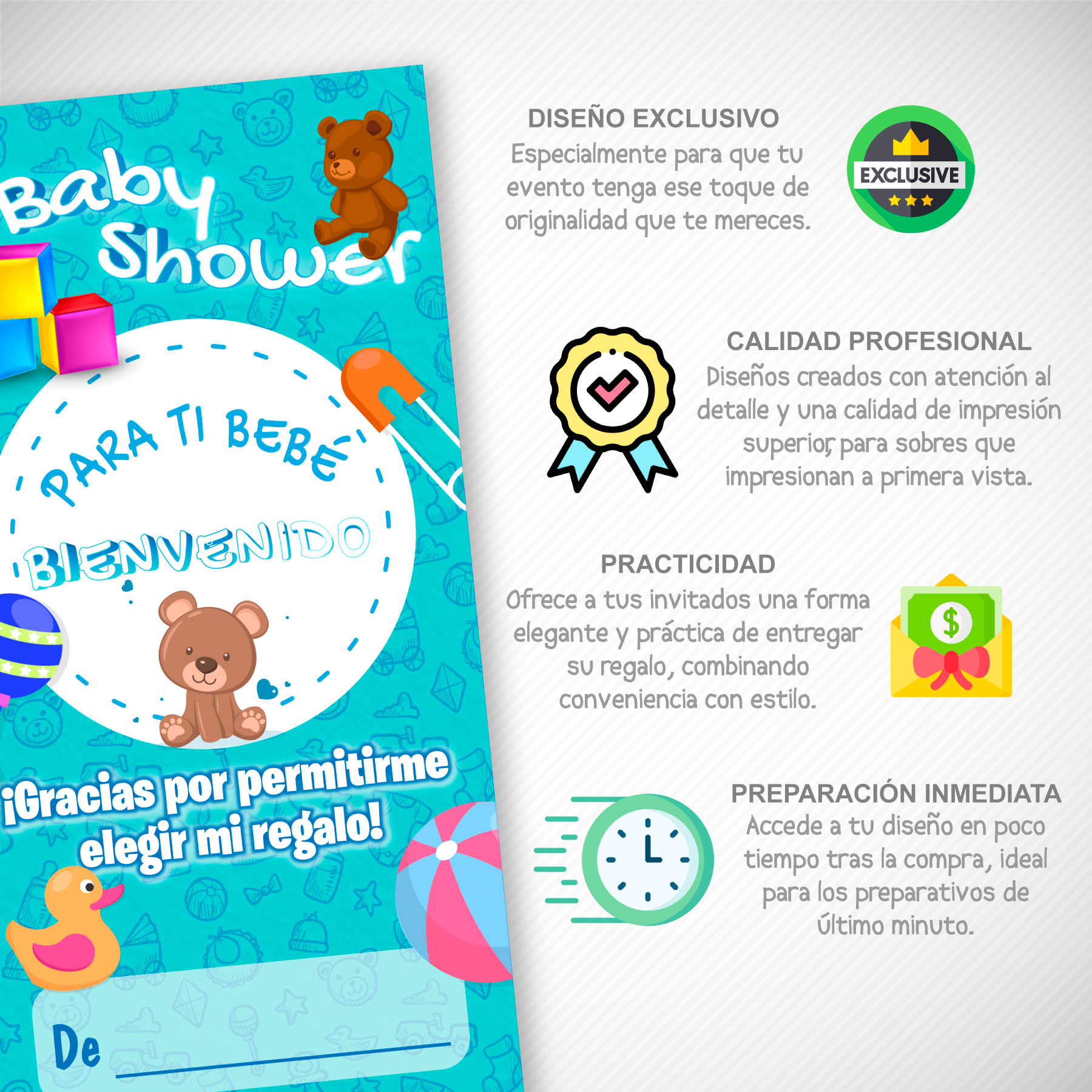- 🎨 Elige únicamente entre los diseños mostrados en el catálogo de la publicación.