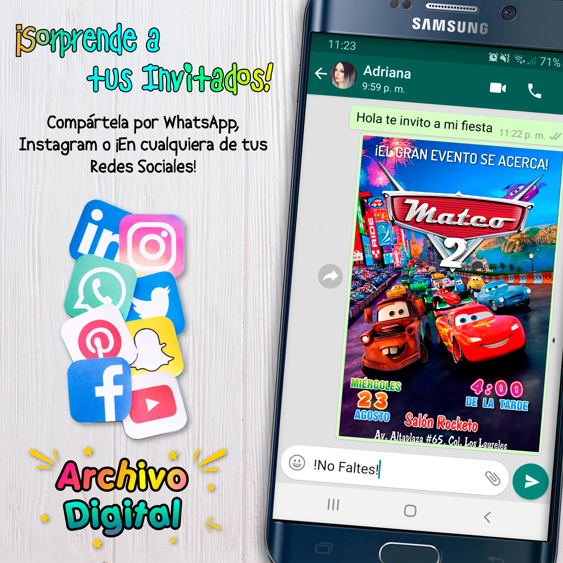 • Modelo digital de una invitación personalizada.
