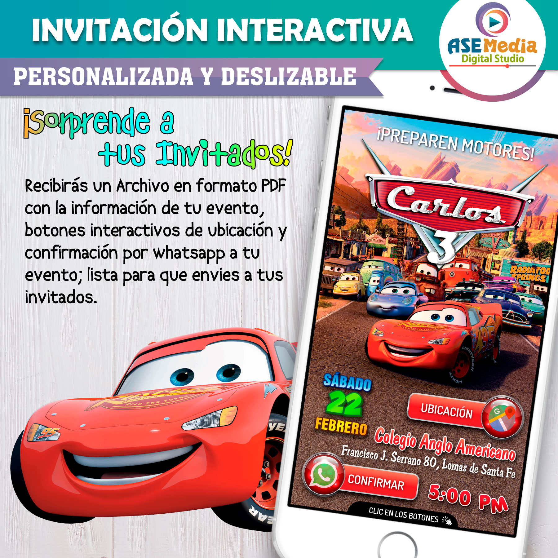 Cars Rayo McQueen Invitación Interactiva de Cumpleaños