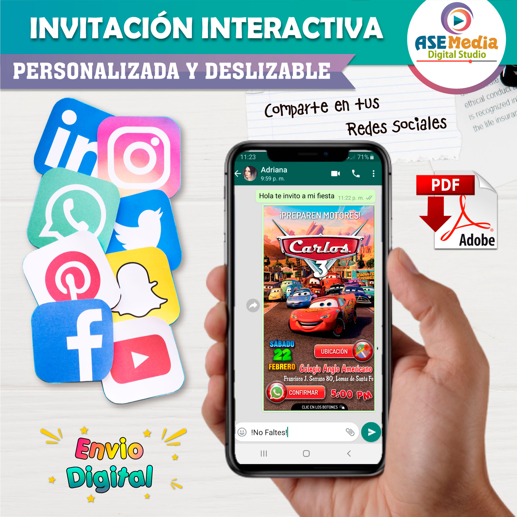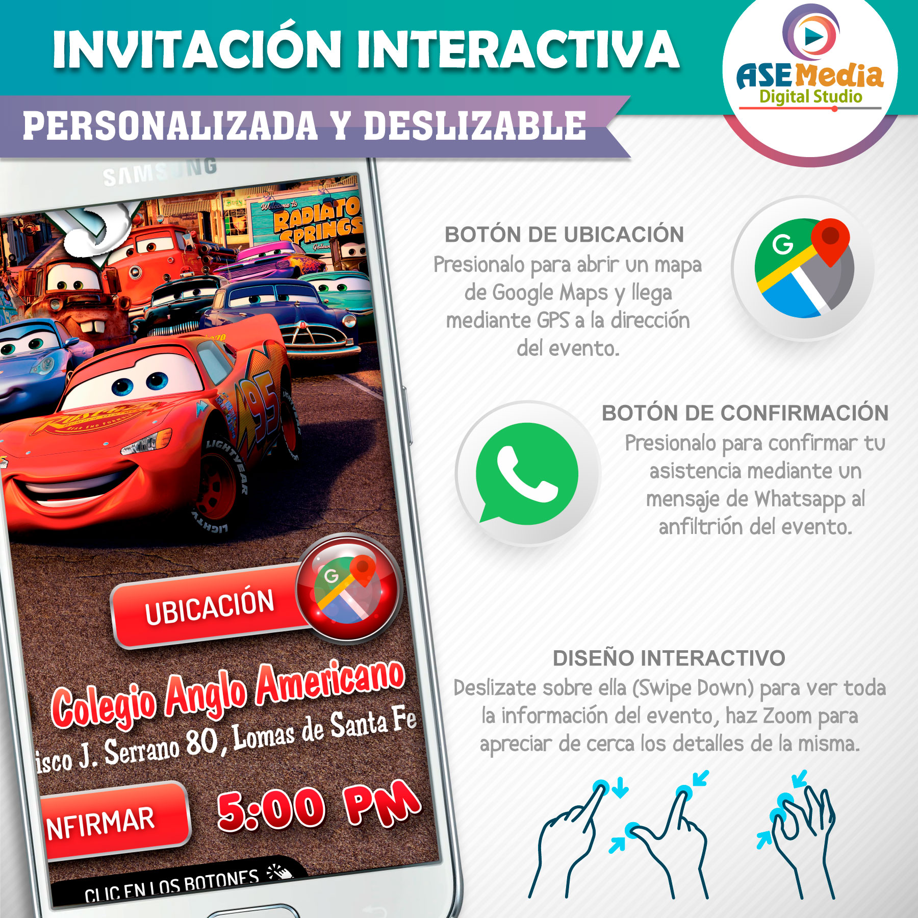 🎉 Sorprende a todos tus invitados con nuestras invitaciones con botones interactivos de ubicación y confirmación de asistencia.