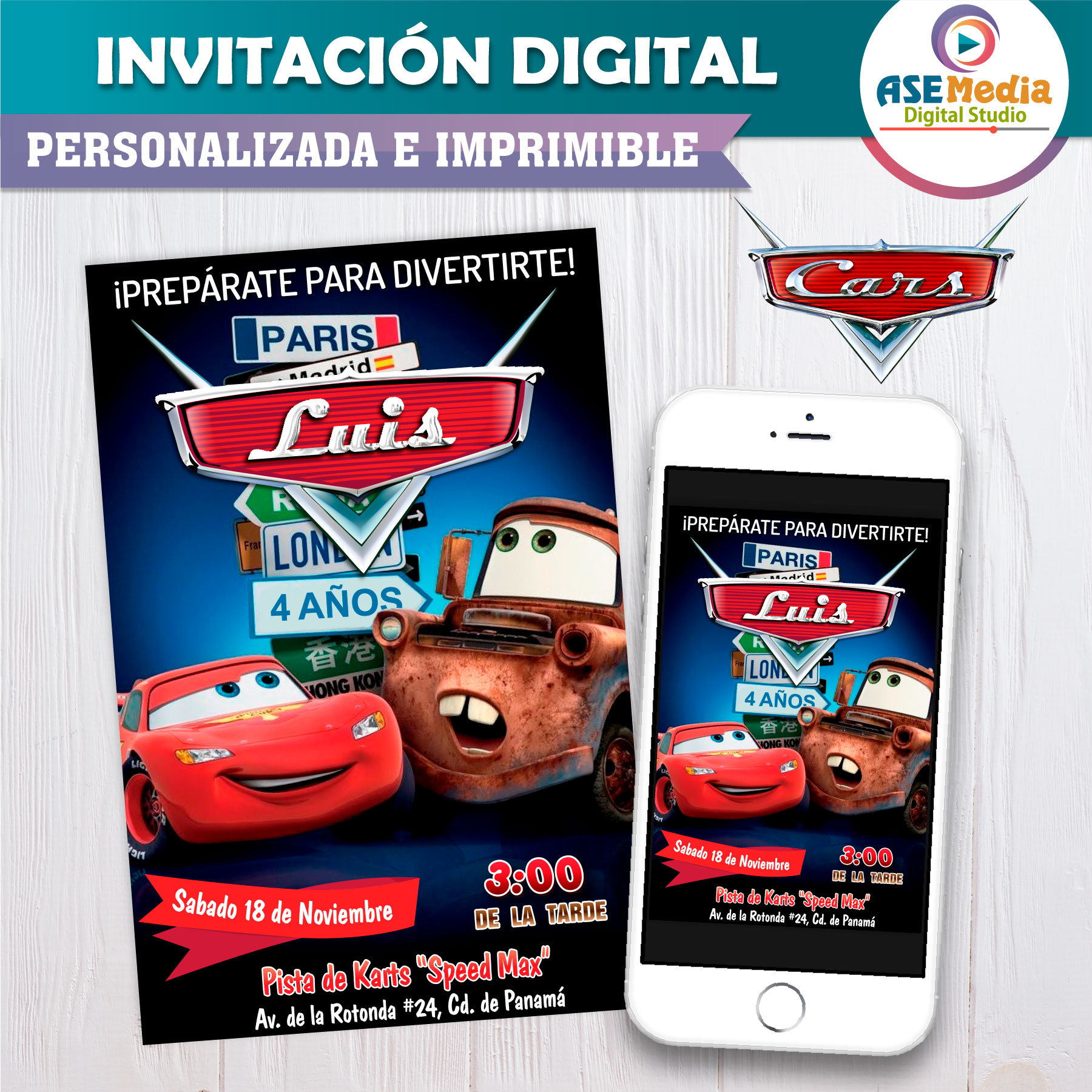 • Modelo digital de una invitación personalizada.