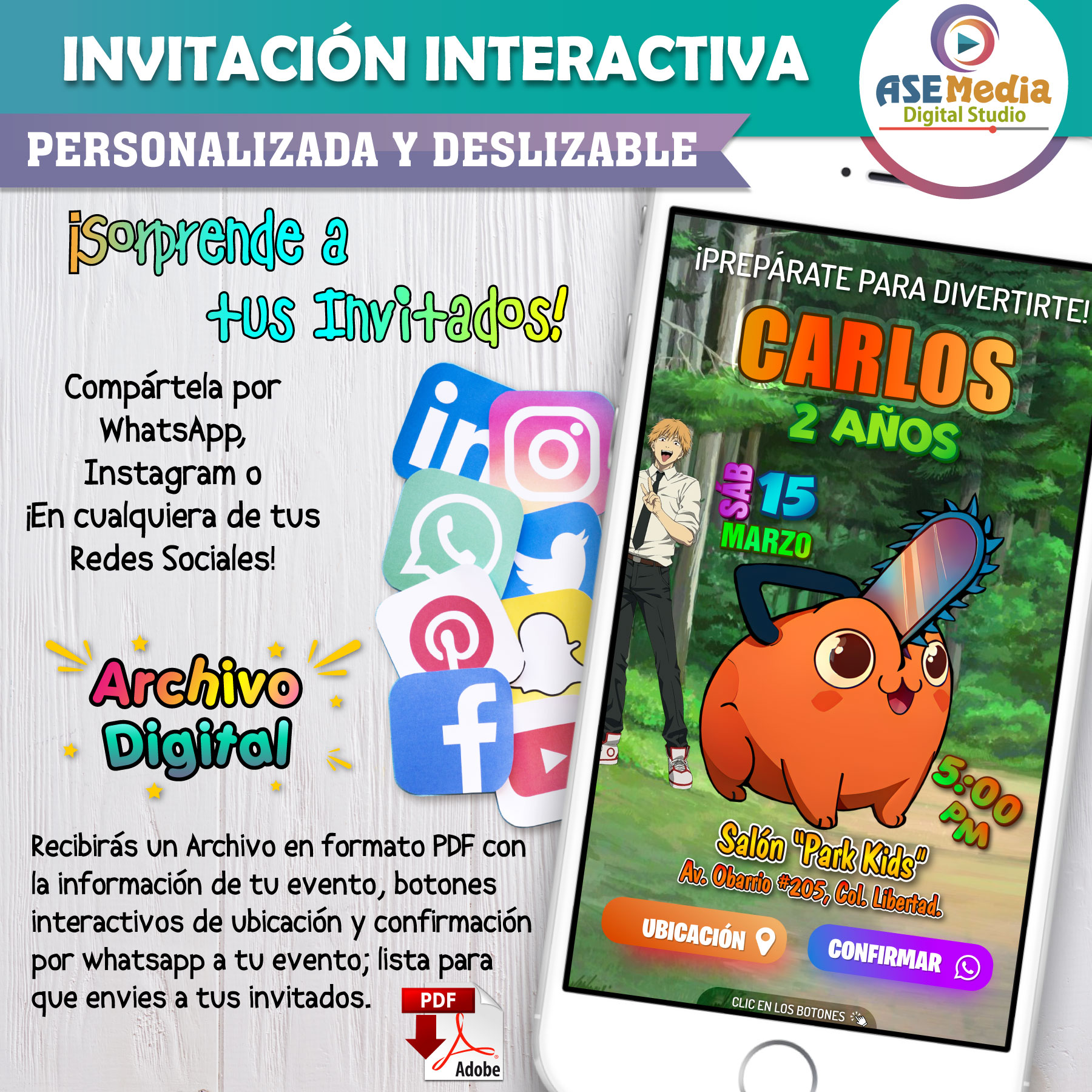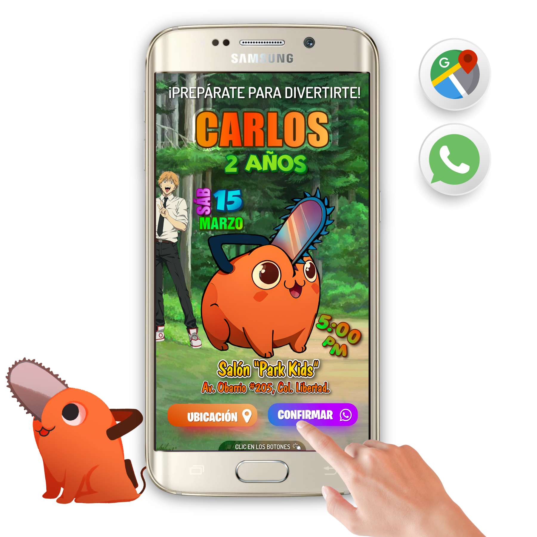 Chainsaw Man, Pochita – Invitación Interactiva de Cumpleaños para WhatsApp