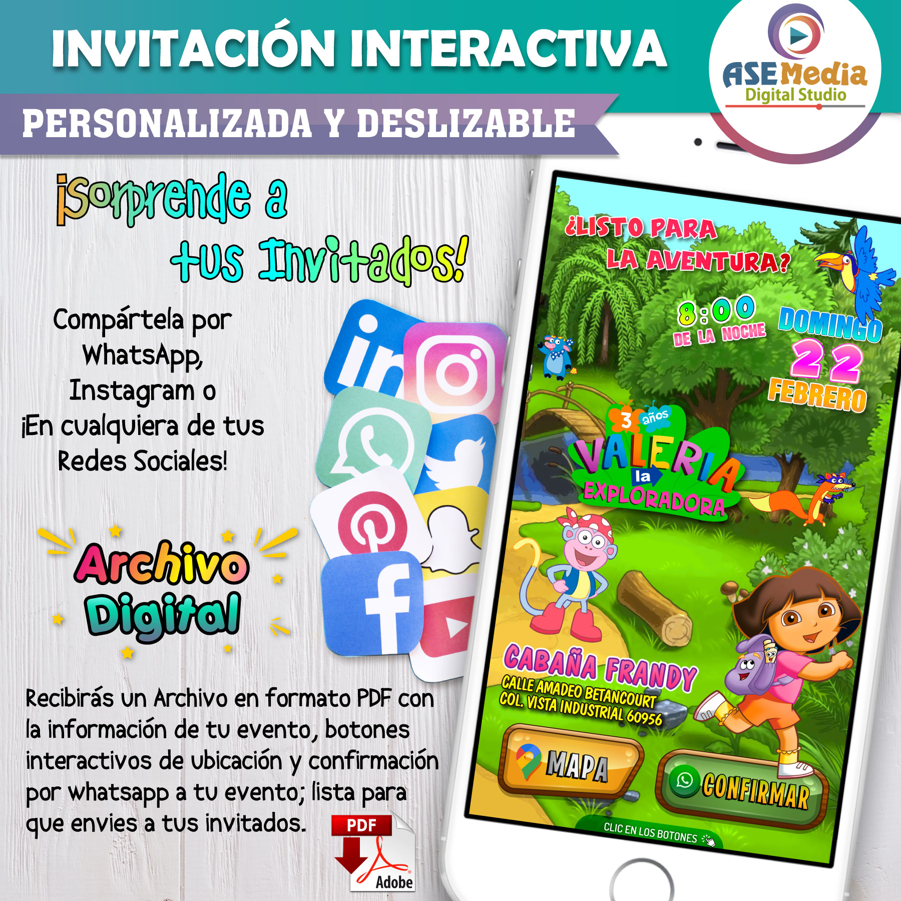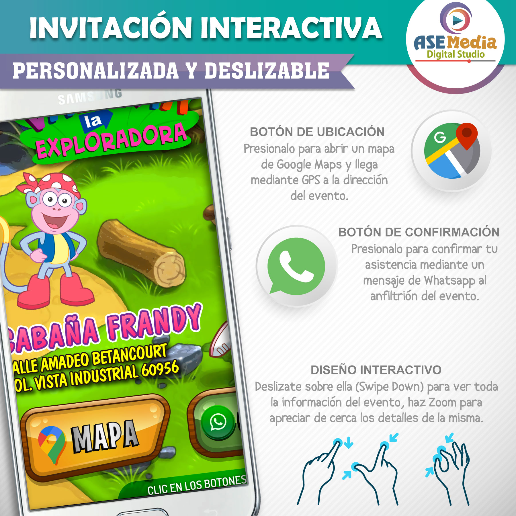 Dora la Exploradora – Invitación Interactiva de Cumpleaños para WhatsApp