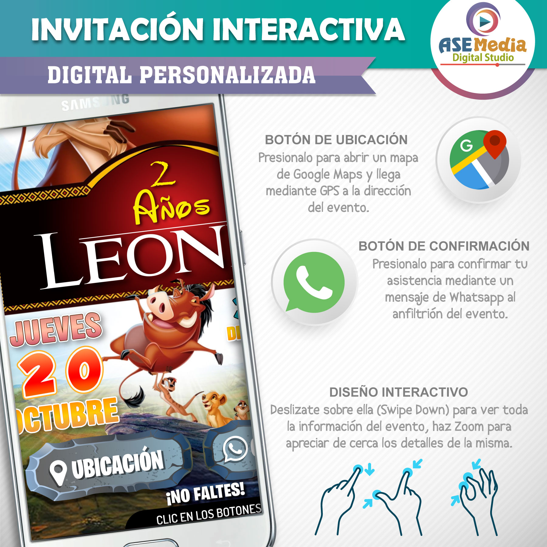 El Rey León, Simba – Invitación Interactiva de Cumpleaños para WhatsApp