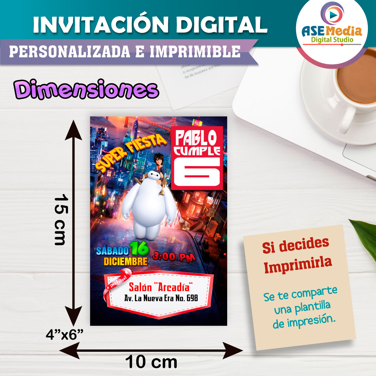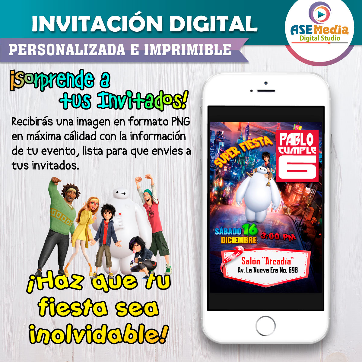 Grandes Héroes Baymax Invitación Digital Personalizada #3