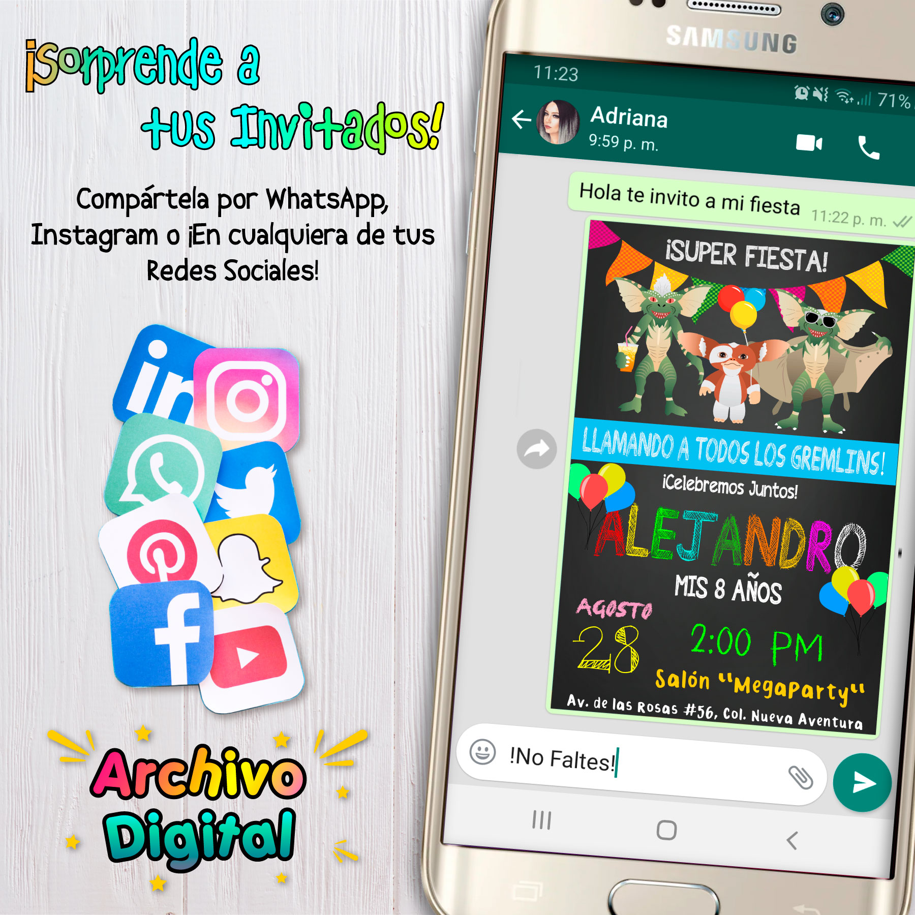 • Modelo digital de una invitación personalizada.