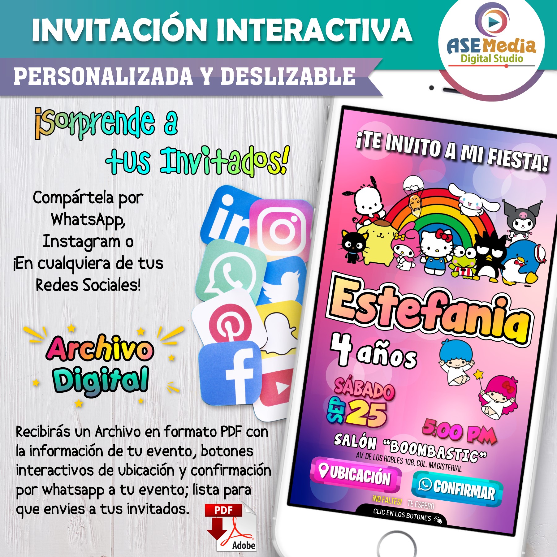 Hello Kitty y Amigos – Invitación Interactiva de Cumpleaños para WhatsApp