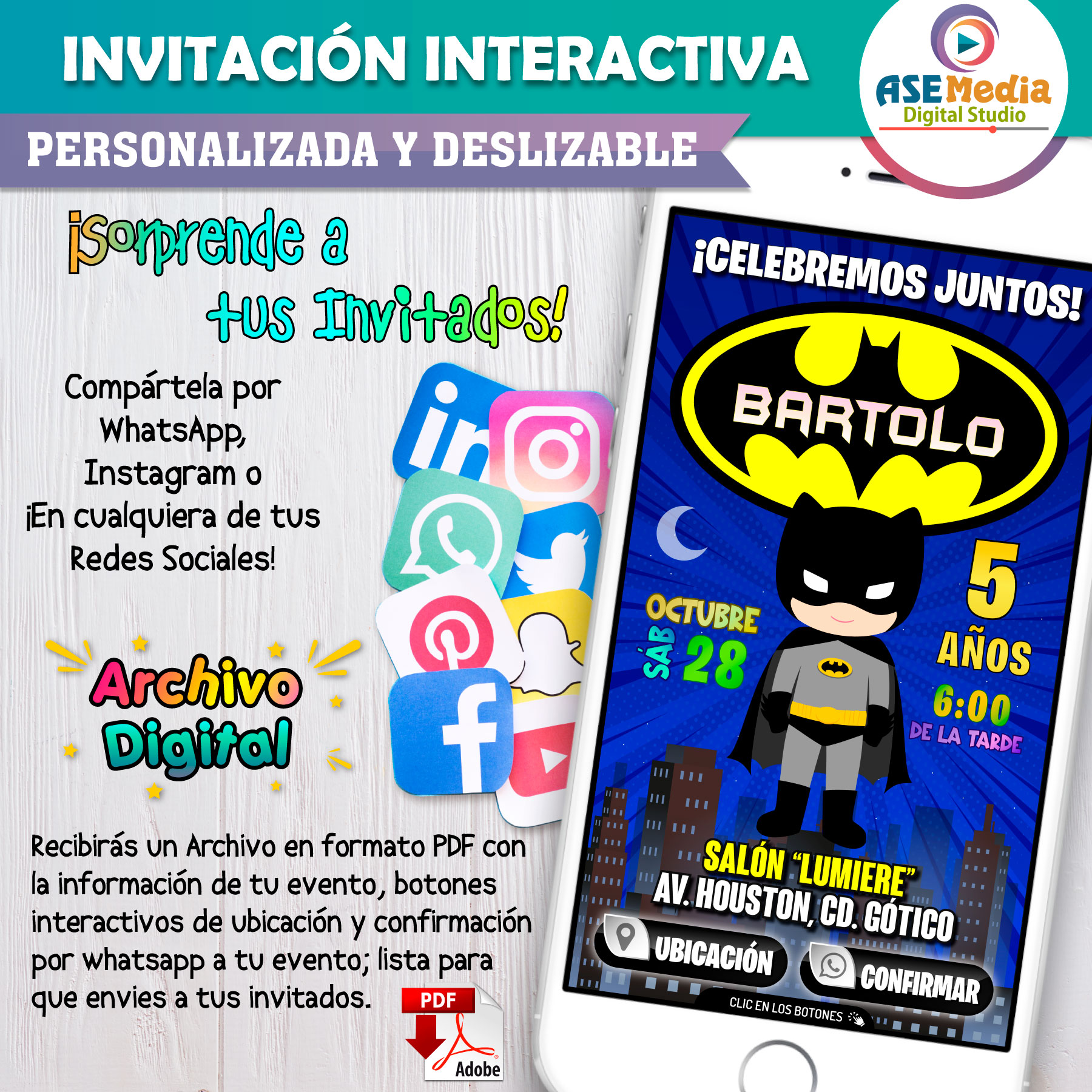 Invitación Batman para WhatsApp – Invitación Interactiva de Cumpleaños