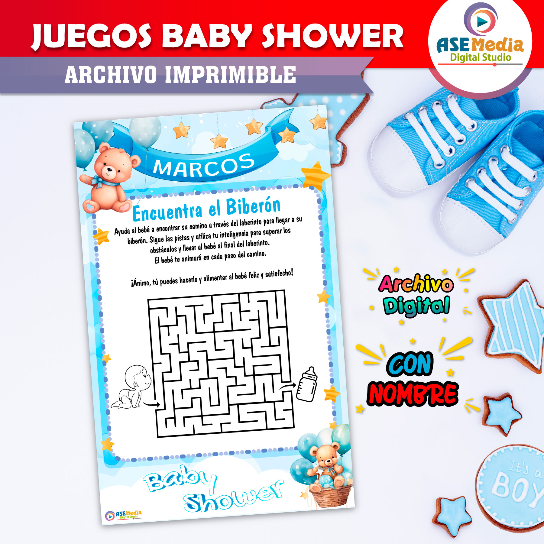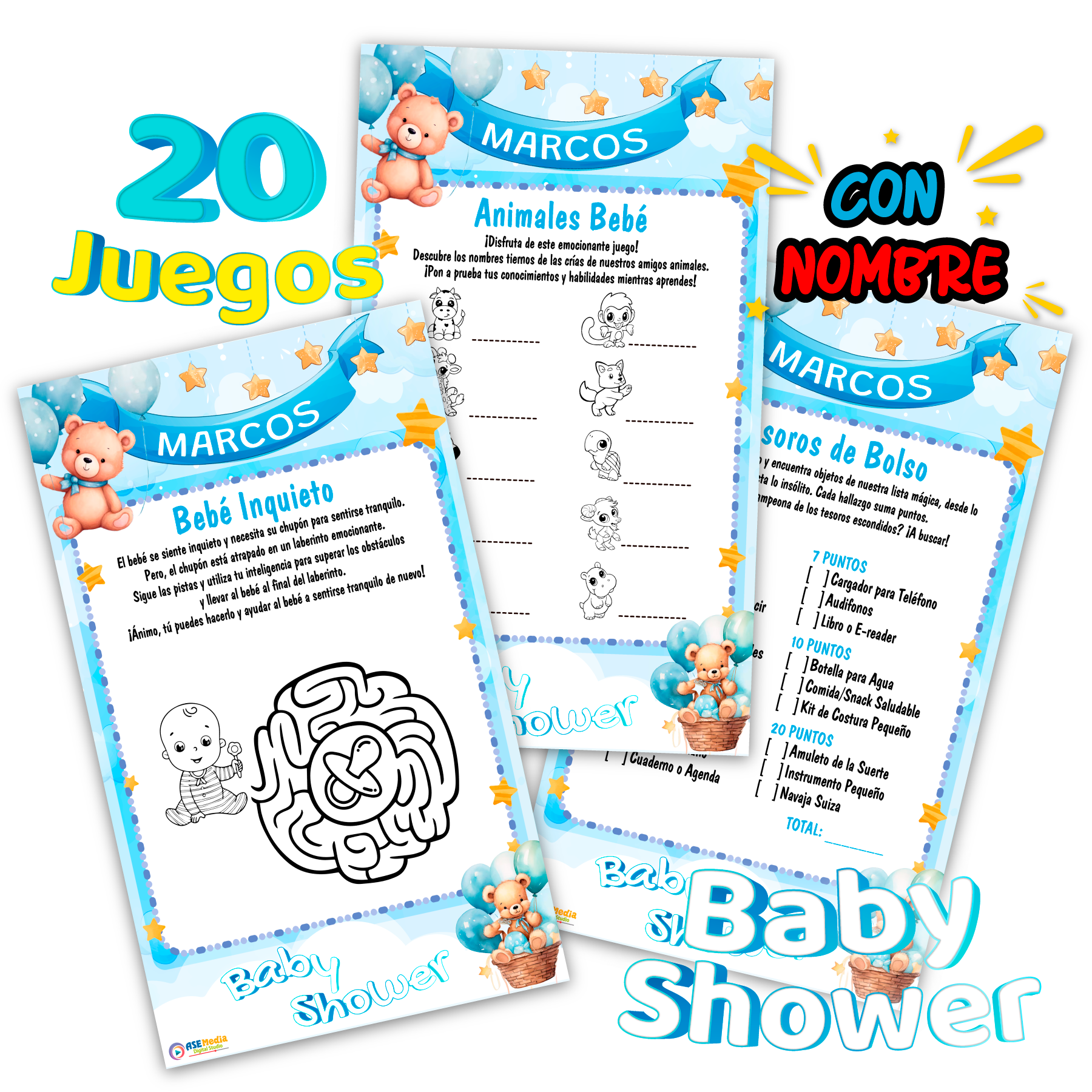 Sorprende a tus invitados con actividades interactivas, originales y totalmente personalizadas con el nombre del bebé o de la futura mamá.