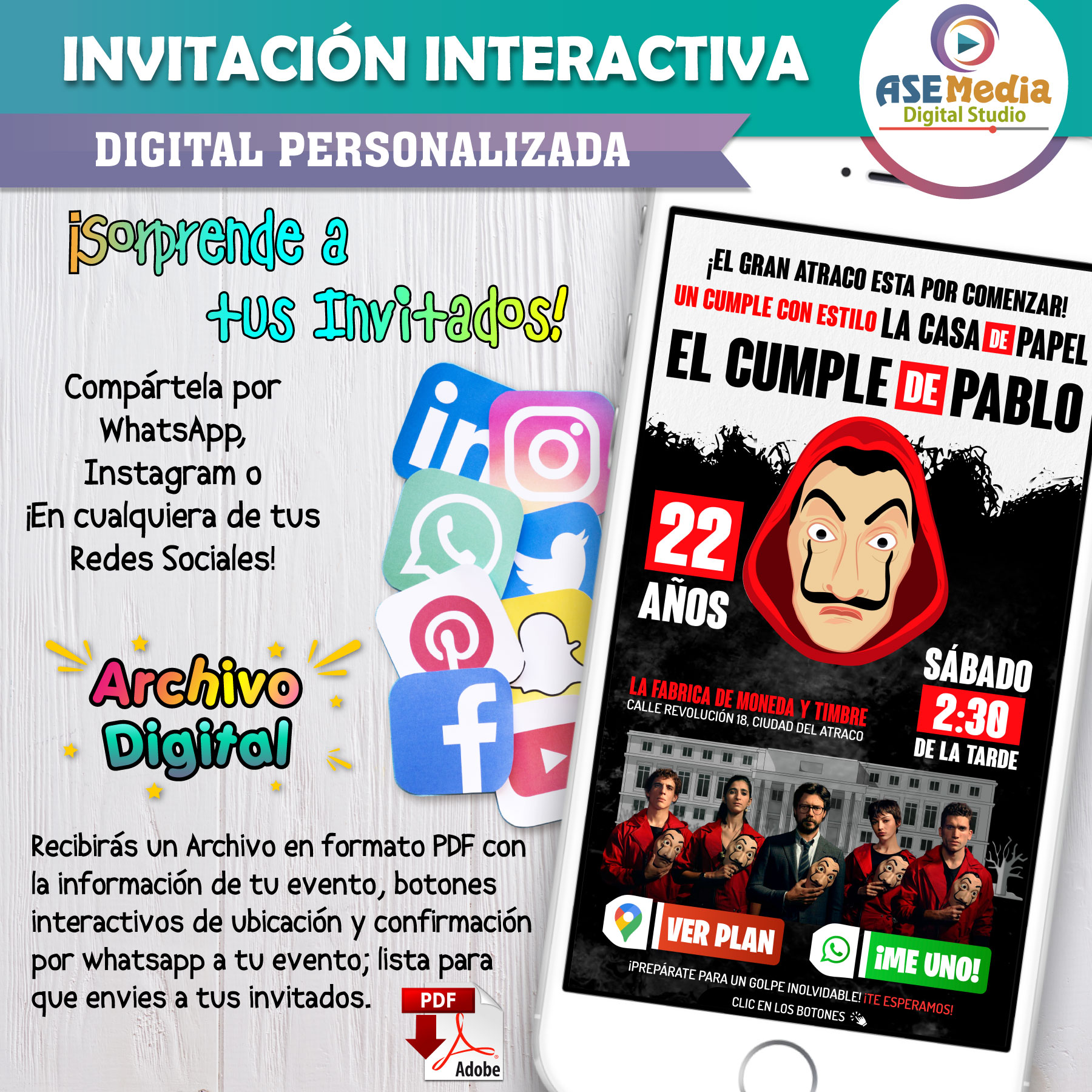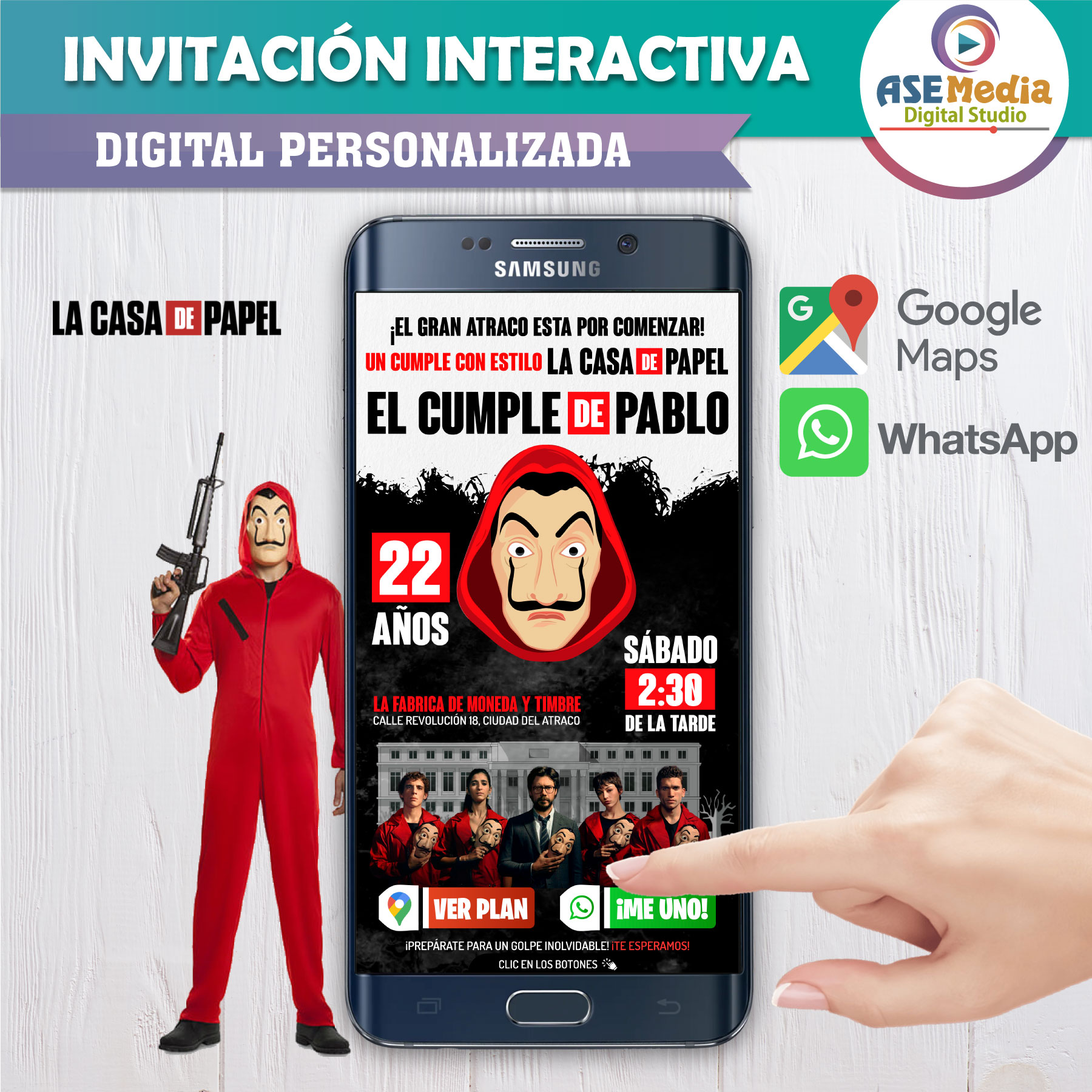 La Casa de Papel – Invitación Interactiva de Cumpleaños para WhatsApp