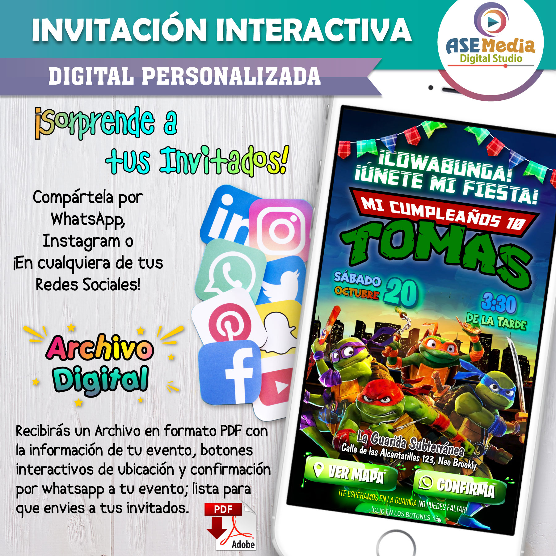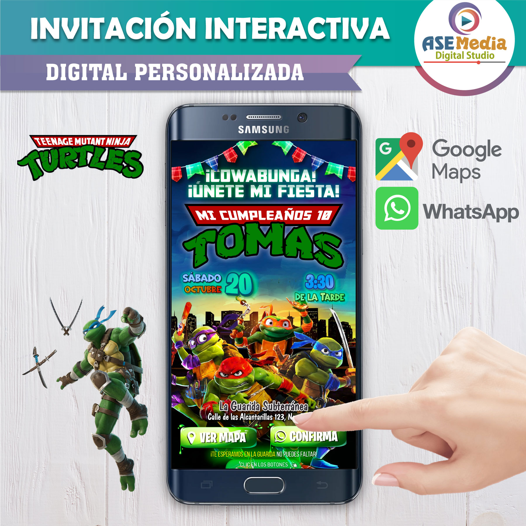 Las Tortugas Ninja – Invitación Interactiva de Cumpleaños para WhatsApp