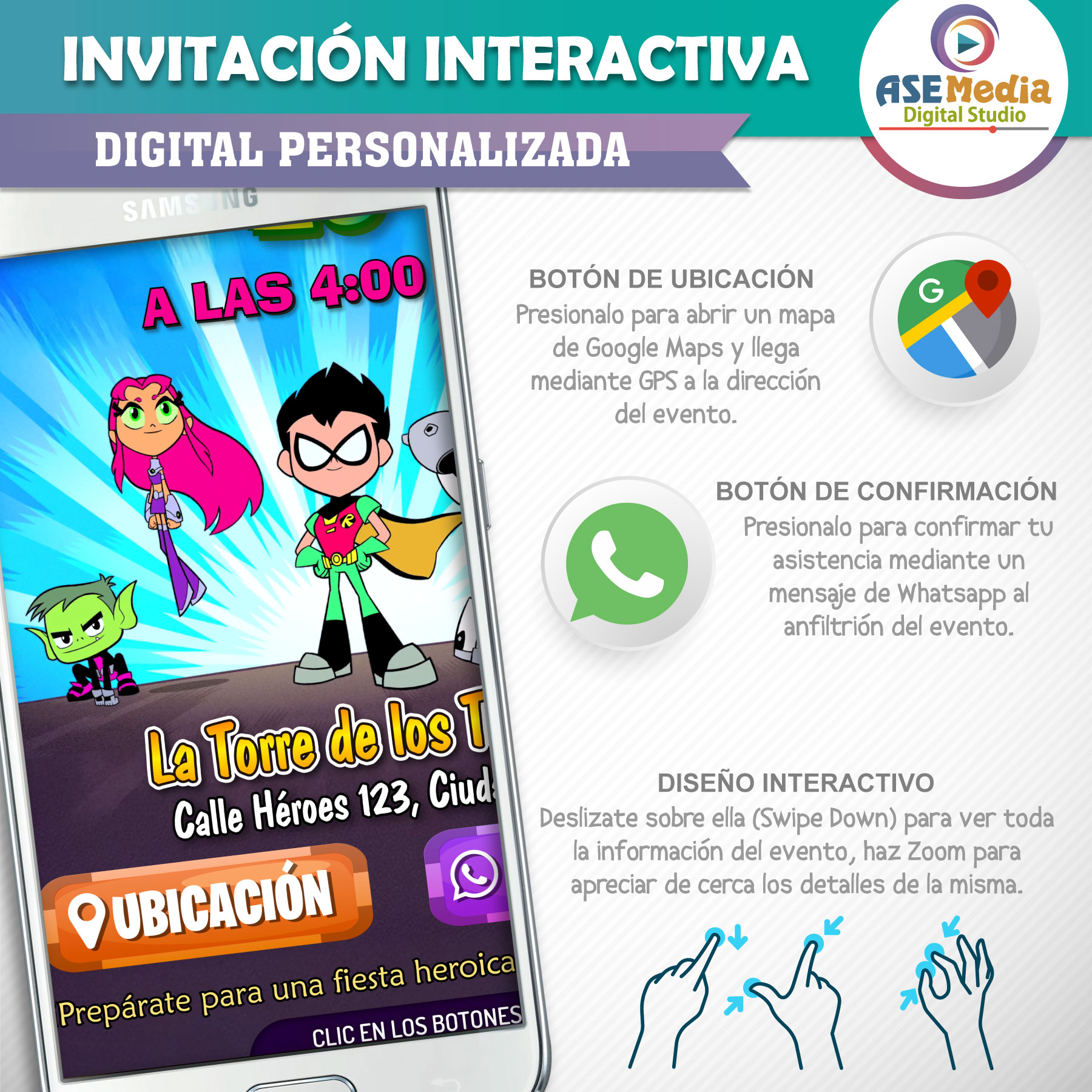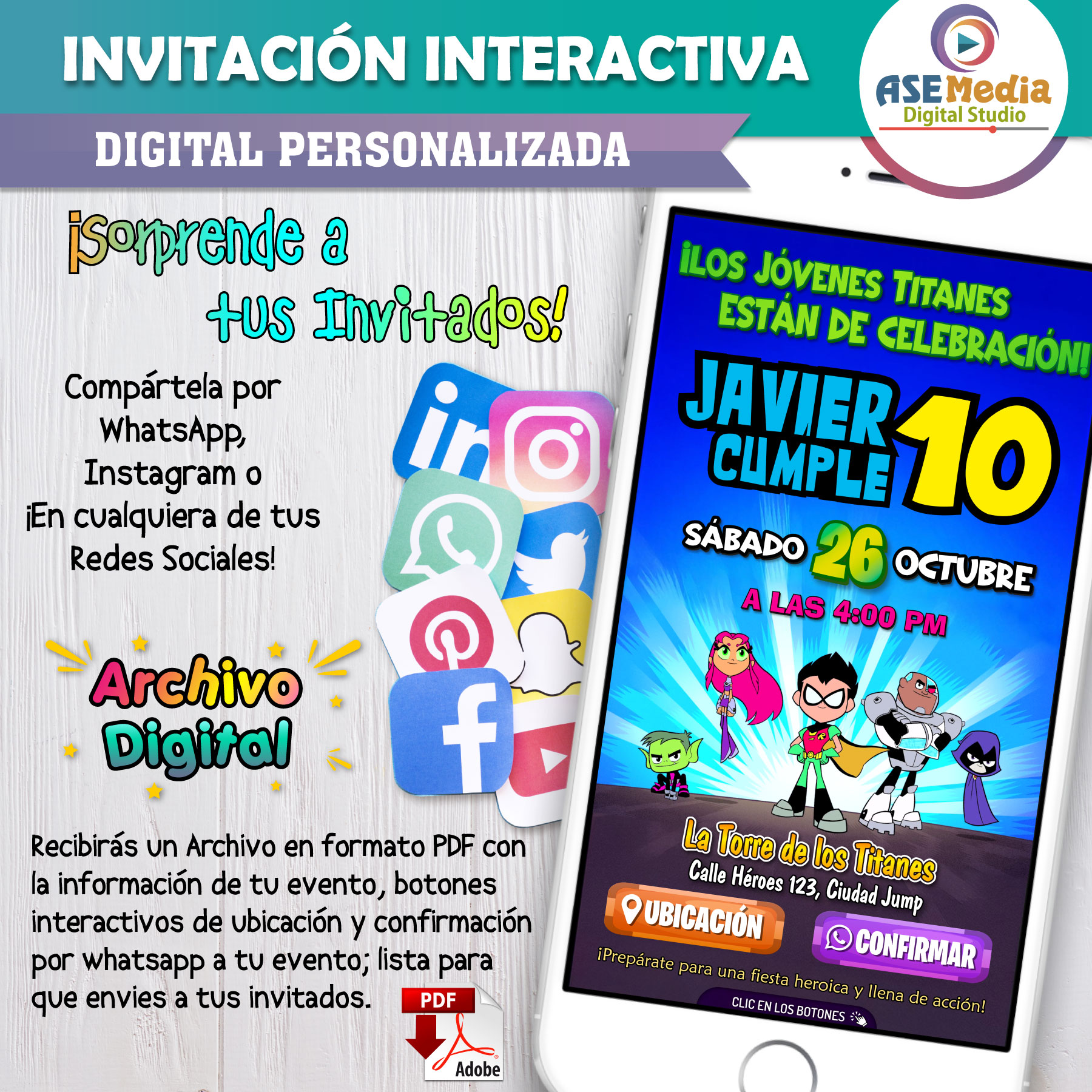 Los Jóvenes Titanes en Acción – Invitación Interactiva de Cumpleaños para WhatsApp