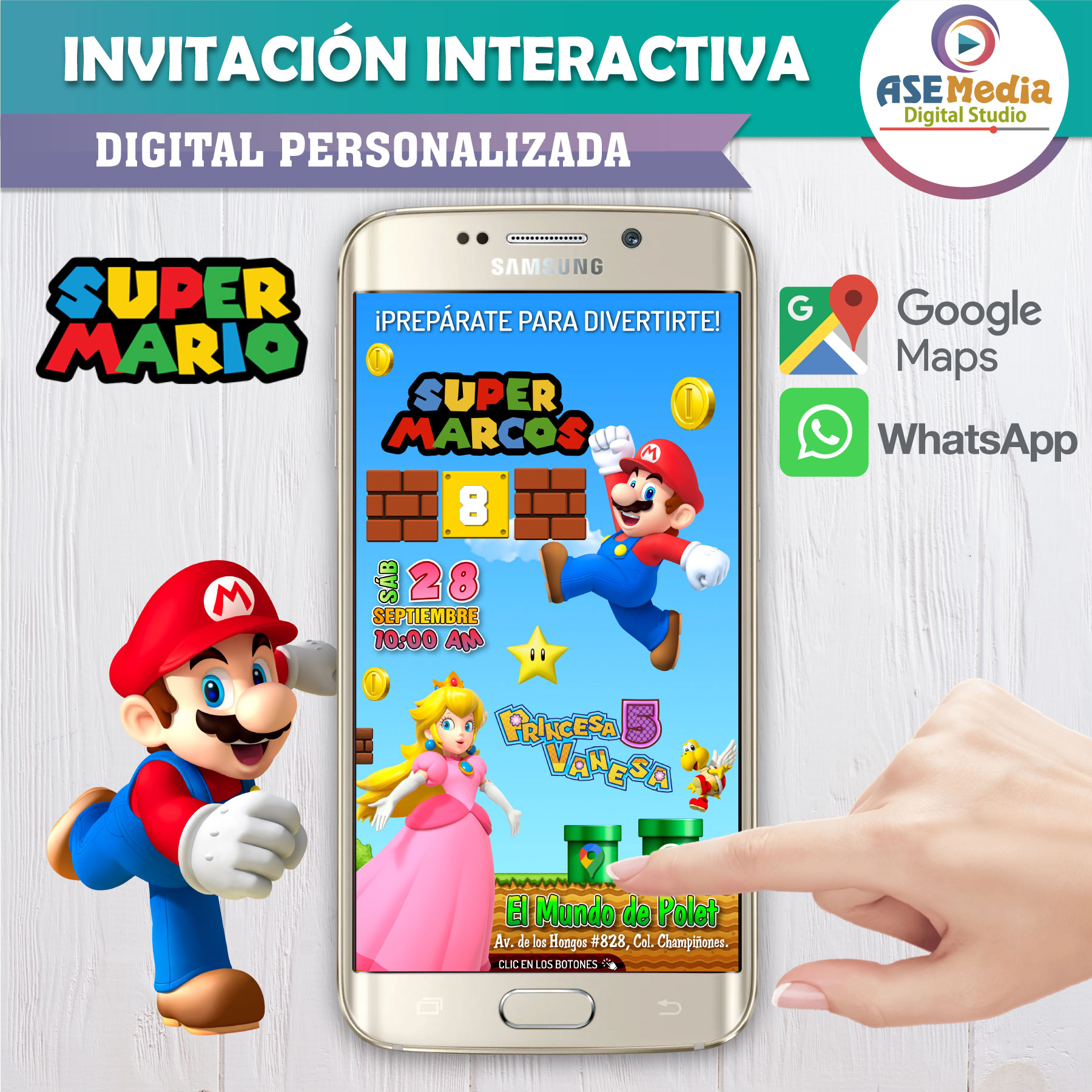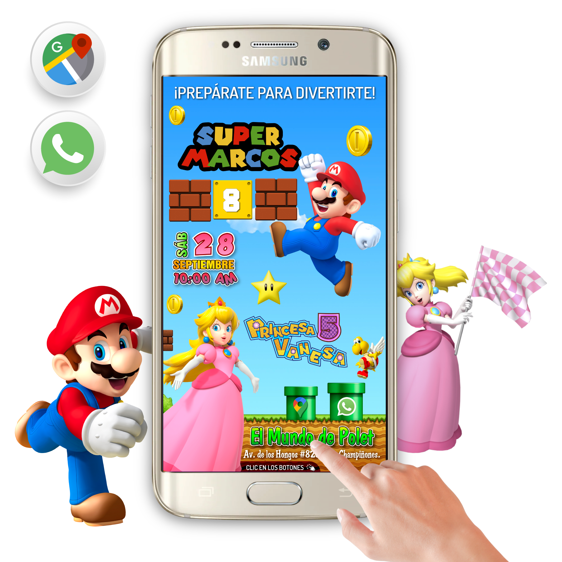 Mario Bros y Princesa Peach 02 – Invitación Interactiva de Cumpleaños para WhatsApp