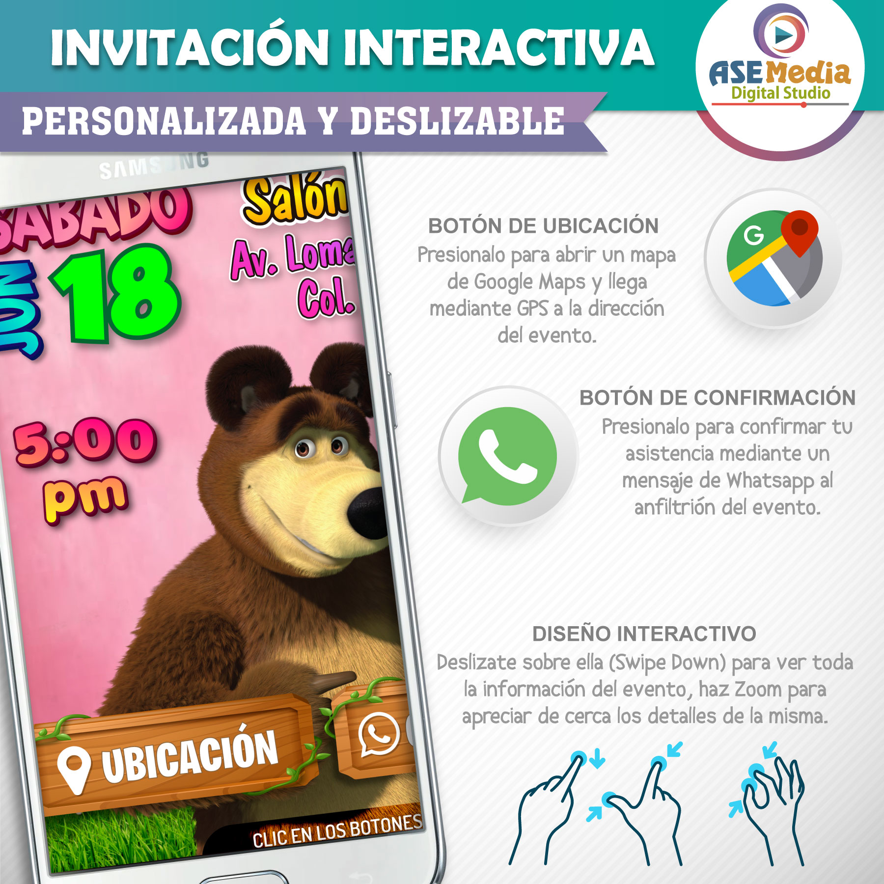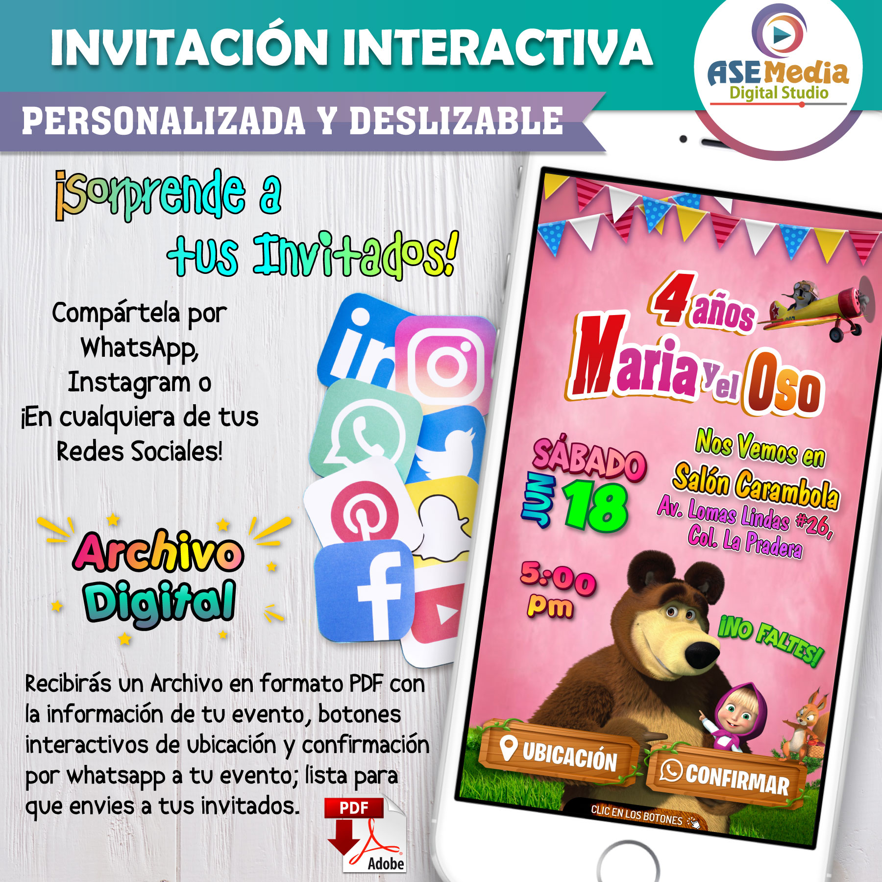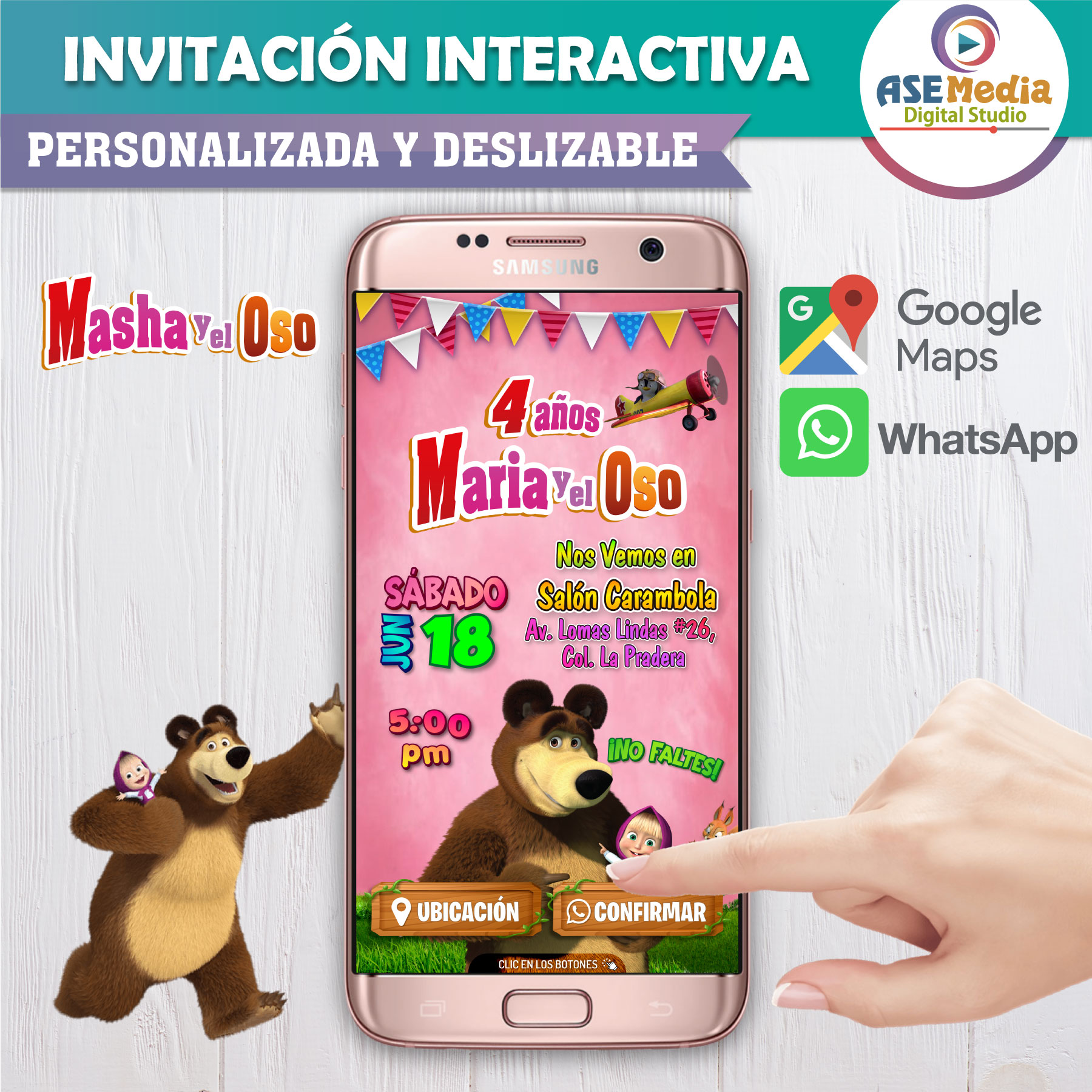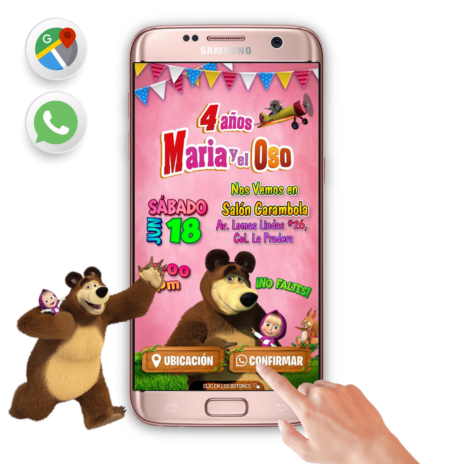 Masha y el Oso 03 – Invitación Interactiva de Cumpleaños para WhatsApp