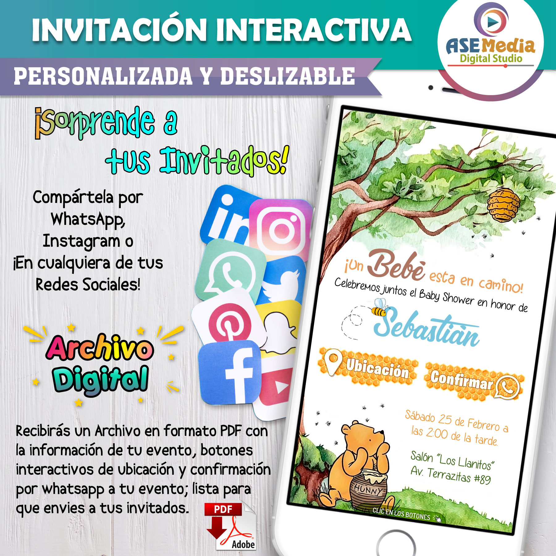 Mi Baby Shower con Winnie Pooh 02 – Invitación Interactiva para WhatsApp