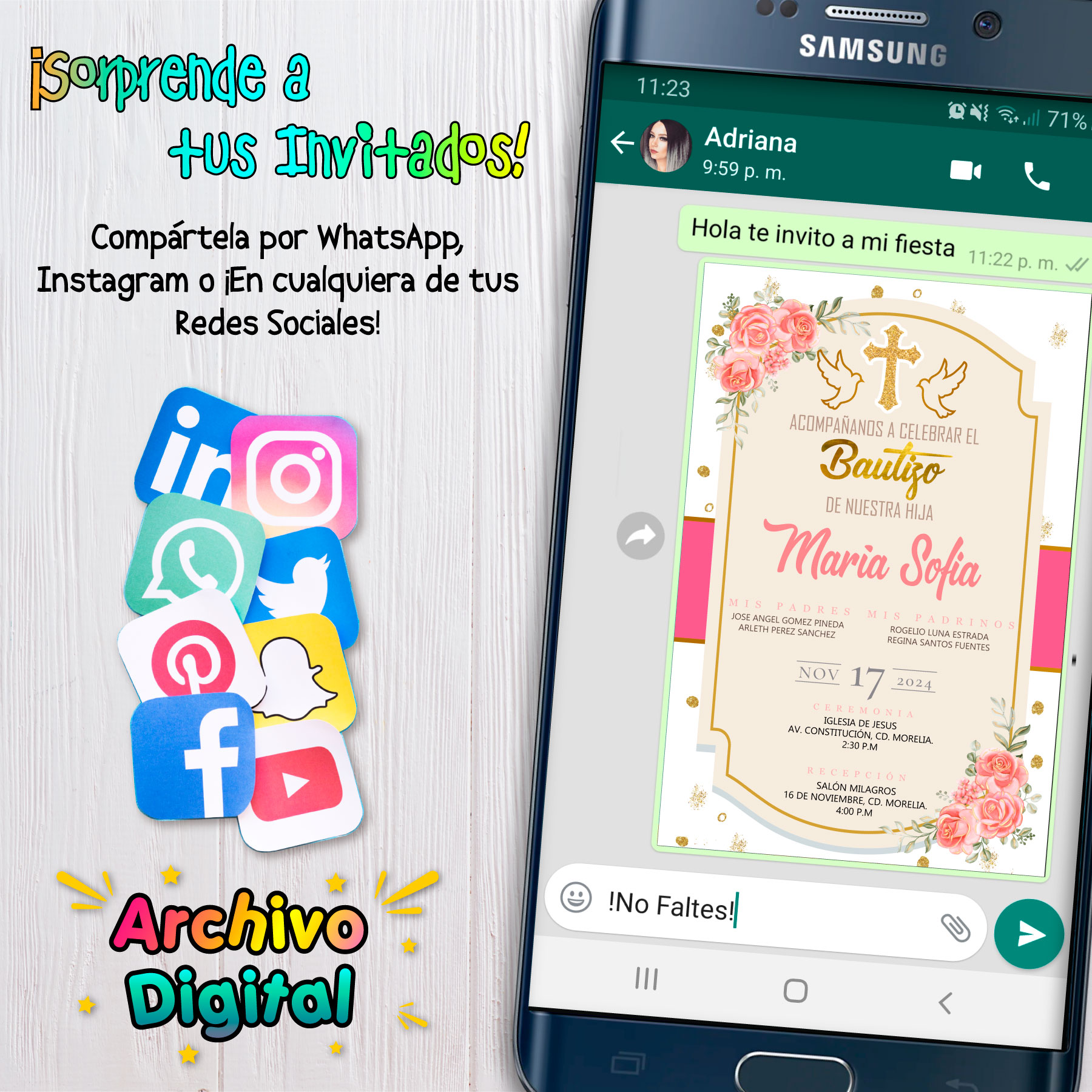 Anuncia tu evento con una invitación digital personalizada lista para compartir en WhatsApp, Facebook o Instagram.