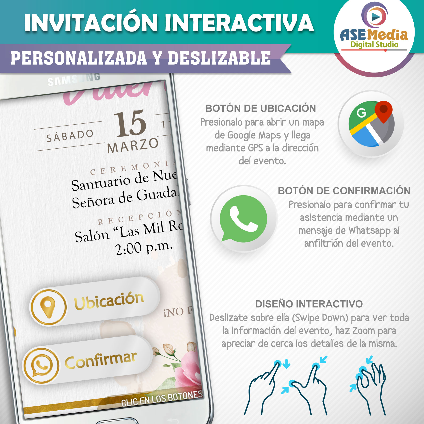 - 🔍 Diseño Interactivo: Desliza, haz zoom y sumérgete en cada detalle de la invitación.