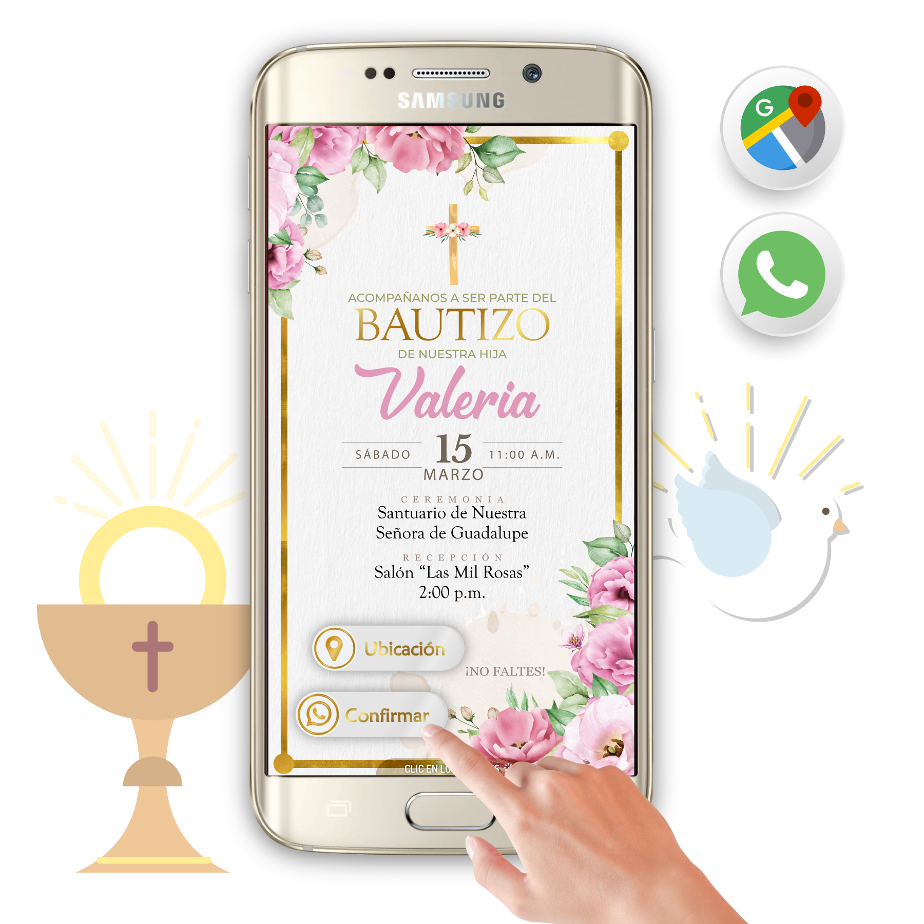 - 📱 Botón de Confirmación: Confirma asistencia con un mensaje directo a Whatsapp. ¡Organiza tu evento con facilidad!