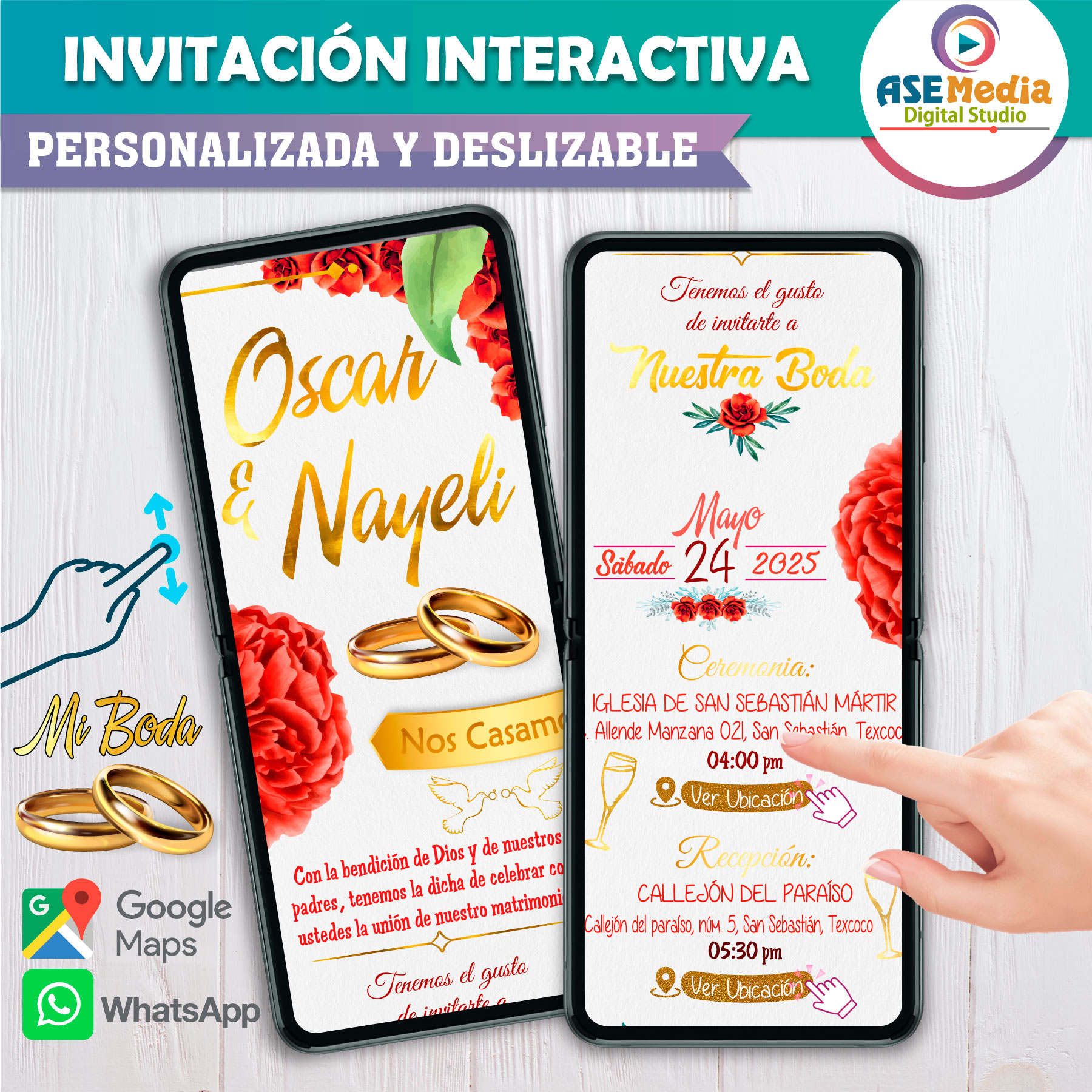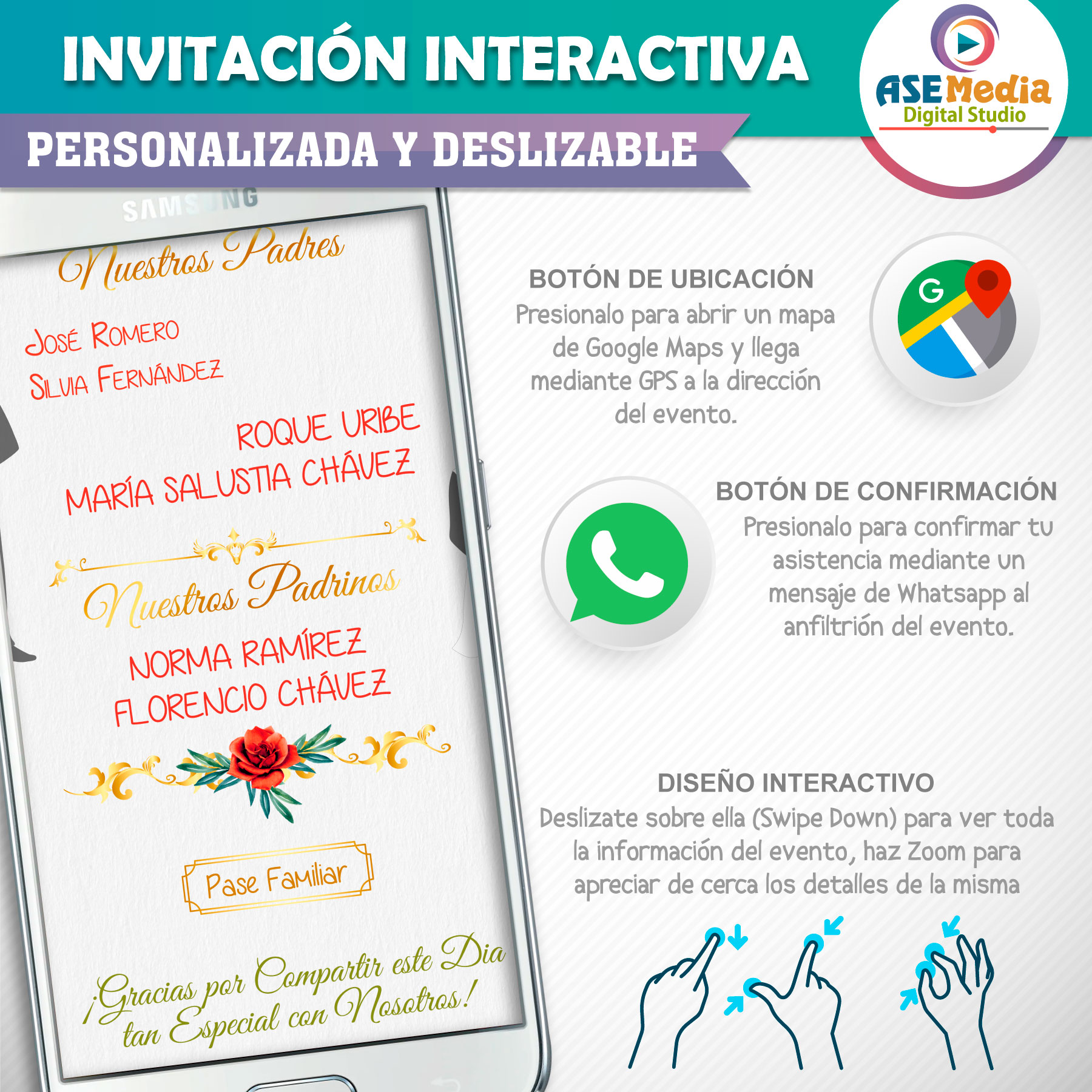 🎉 Sorprende a todos tus invitados con nuestras invitaciones con botones interactivos de ubicación y confirmación de asistencia.