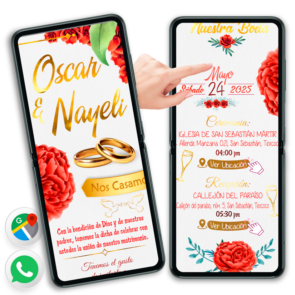 Mi Boda Dorada Rosas Rojas Invitación Interactiva para Boda