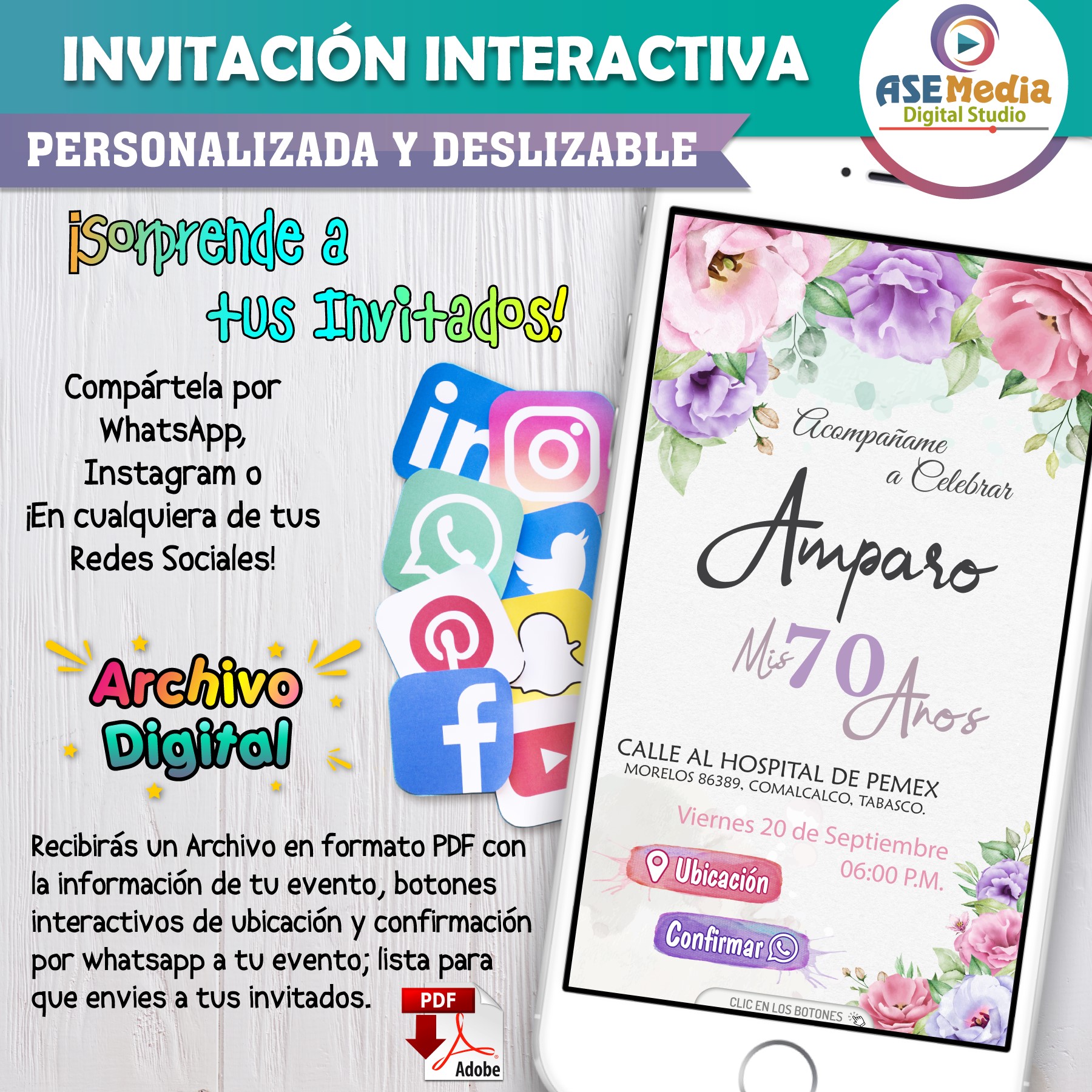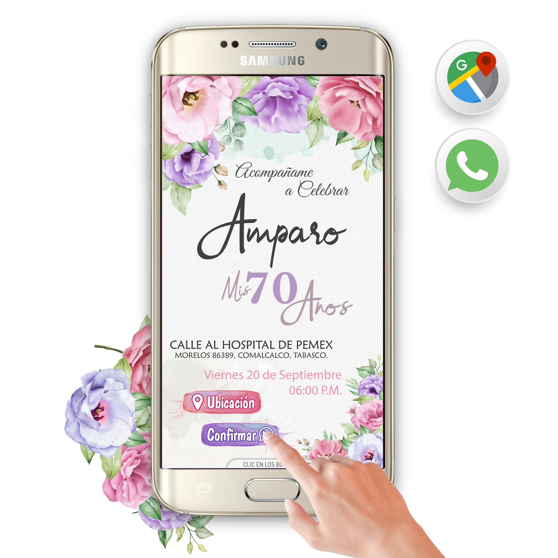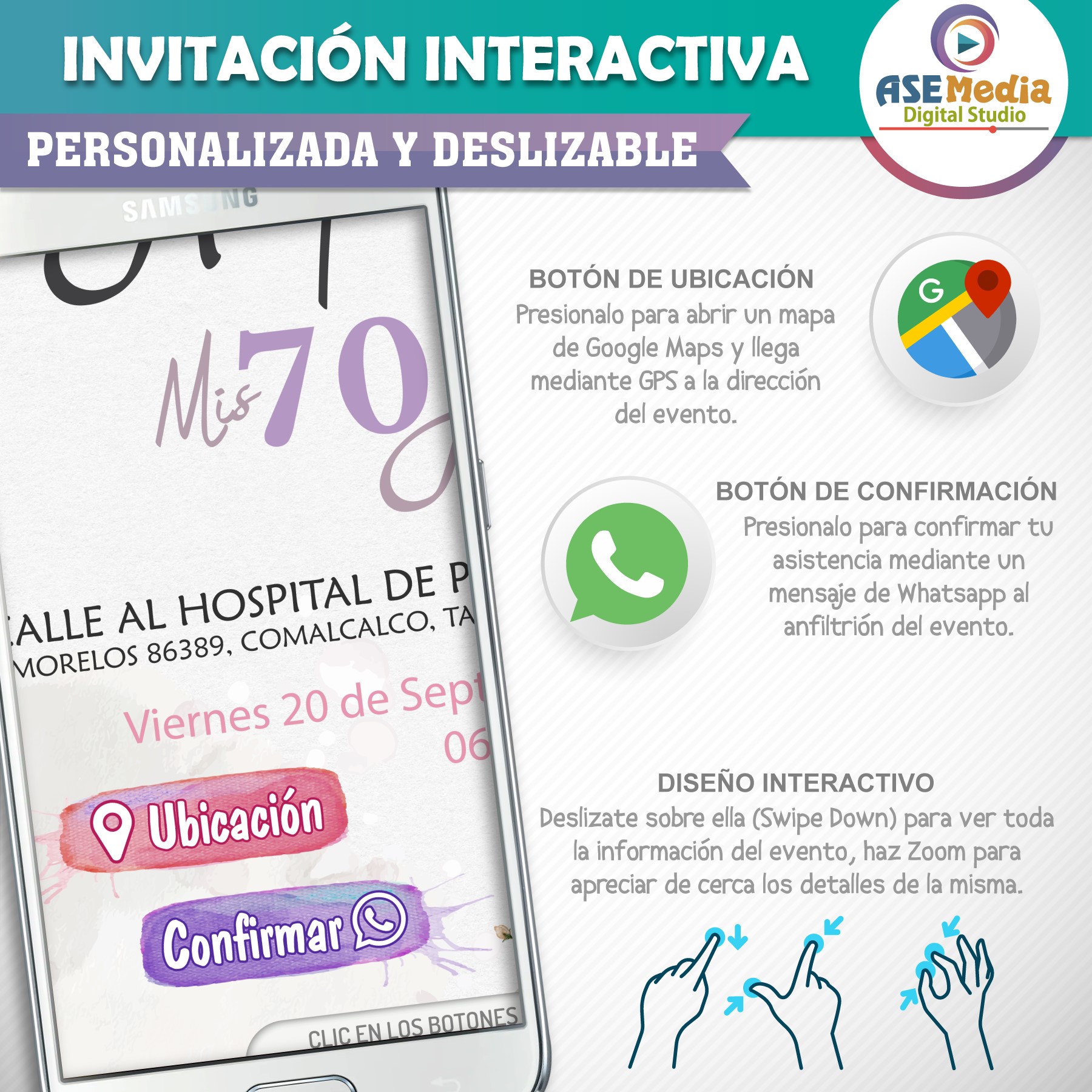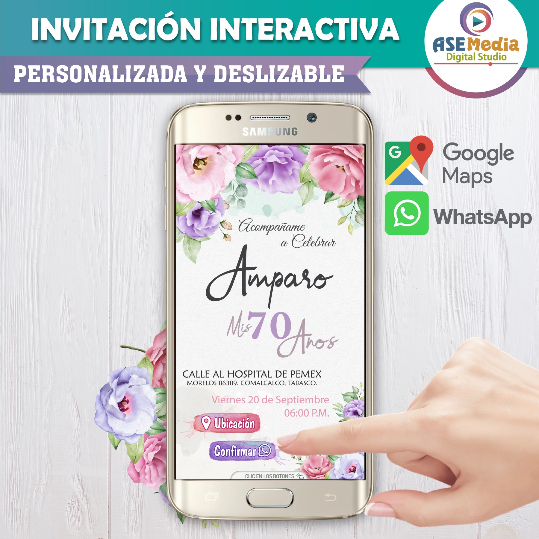 🎉 Invitación interactiva con botones para ubicación y confirmación.