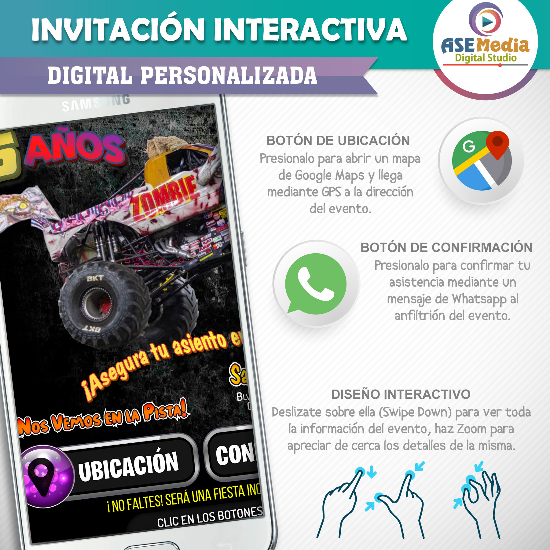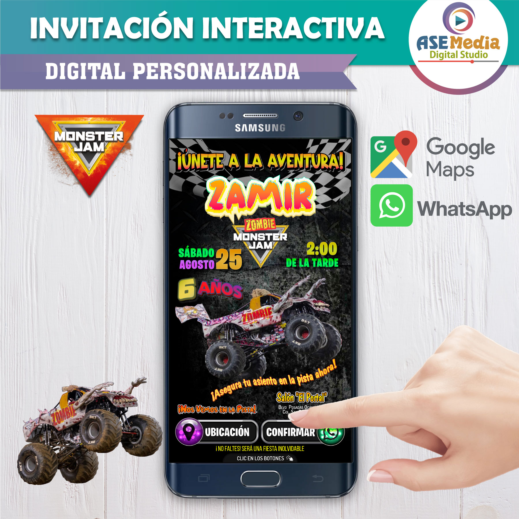 Monster Jam, Zombie – Invitación Interactiva de Cumpleaños para WhatsApp