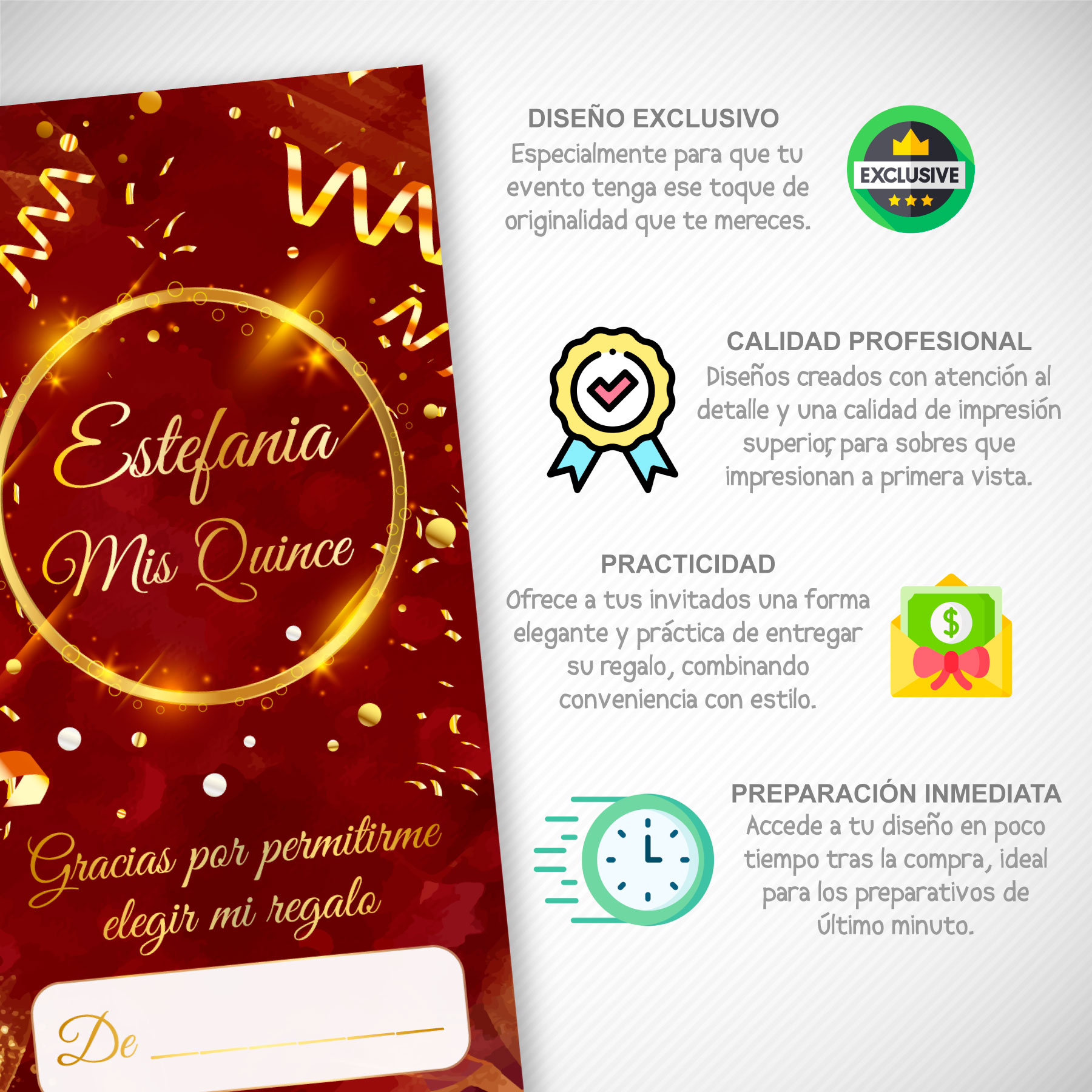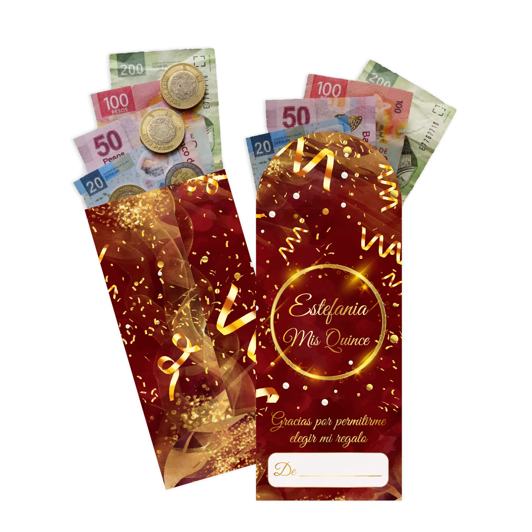 - 📏 Medidas Ideales: 8.5 cm de ancho por 17 cm de largo, perfecto para obsequios en efectivo o tarjetas.
