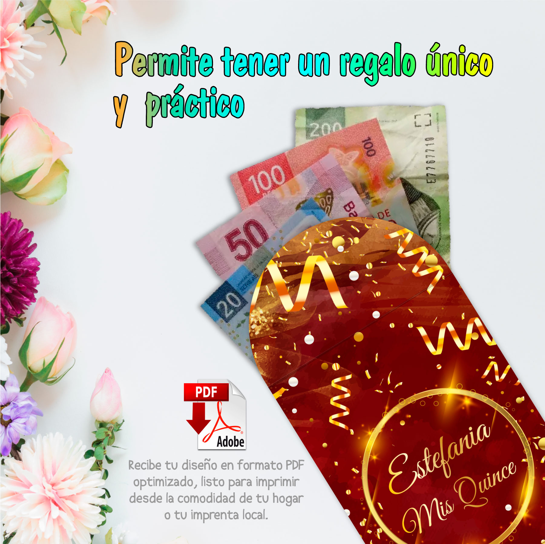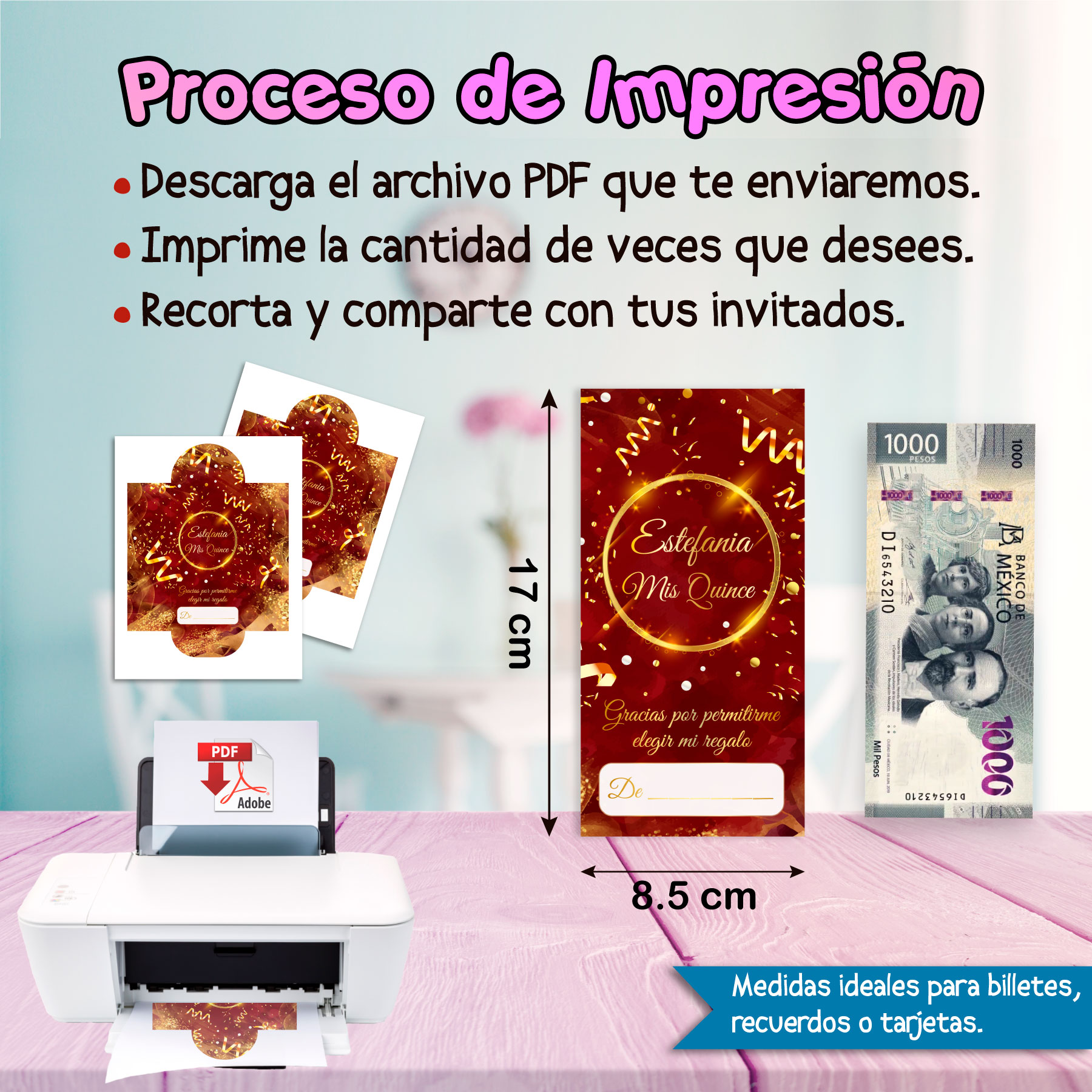 Recibe un archivo digital listo para imprimir en casa o en tu papelería favorita. Ahorra tiempo, ahorra dinero y entrega un regalo con presencia.