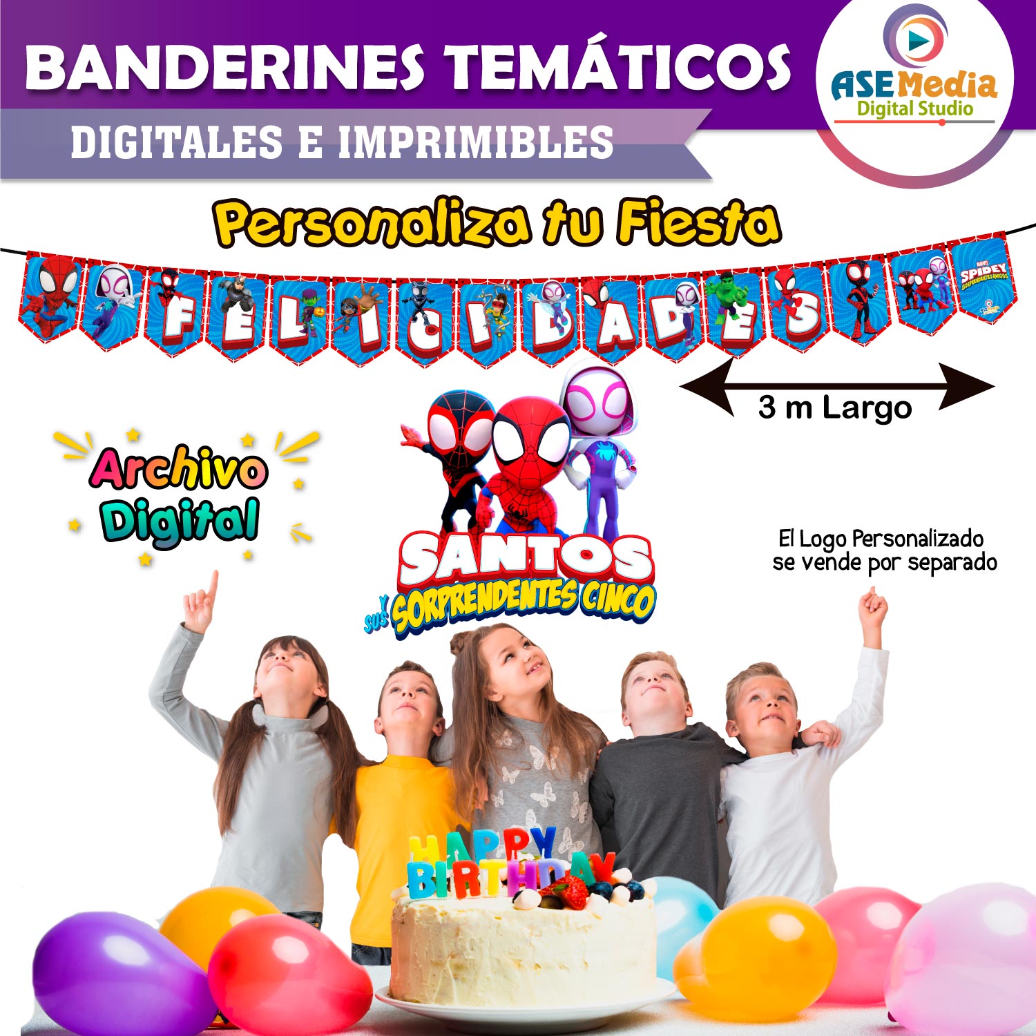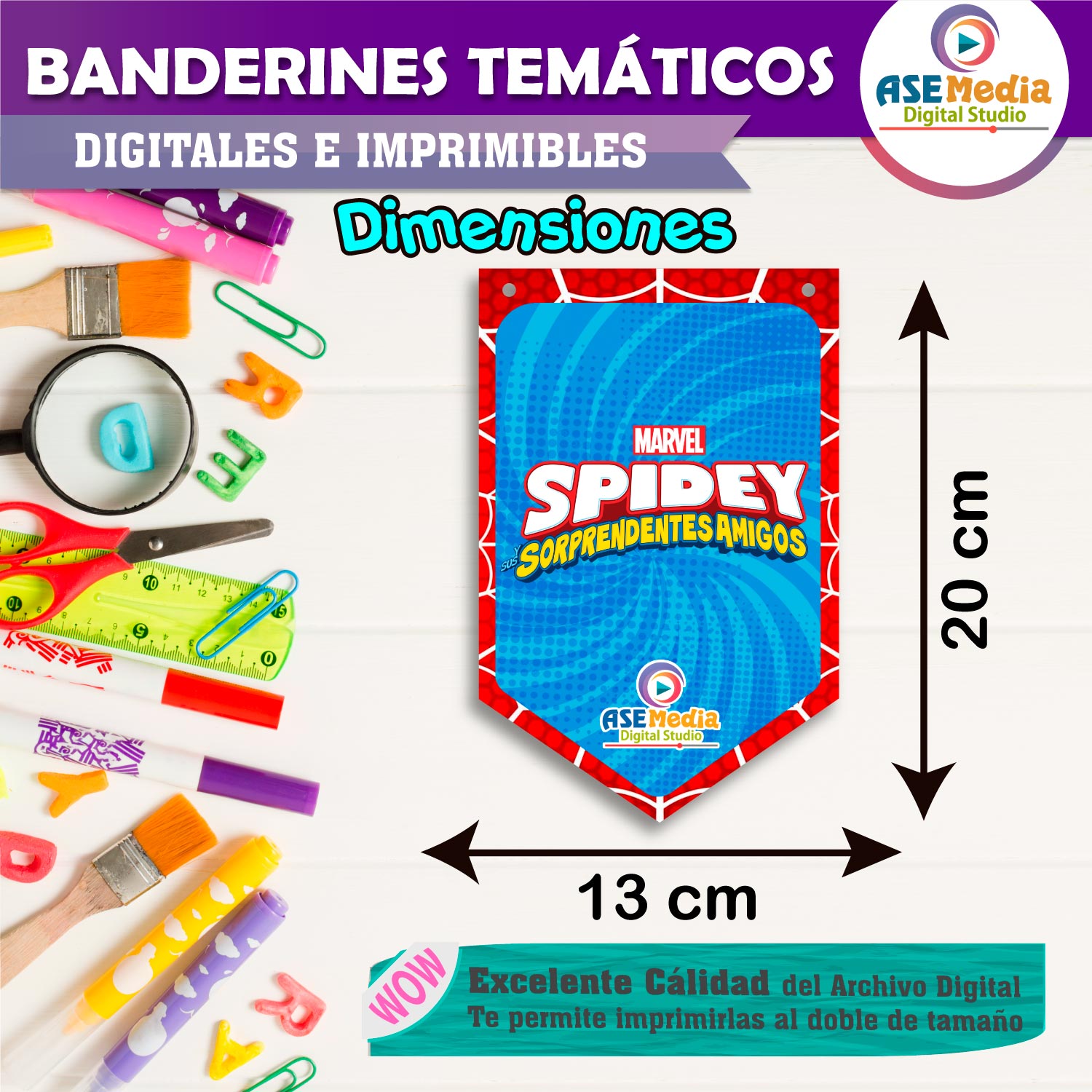 • Modelo digital (.pdf) de 16 banderines con la temática de tu evento.