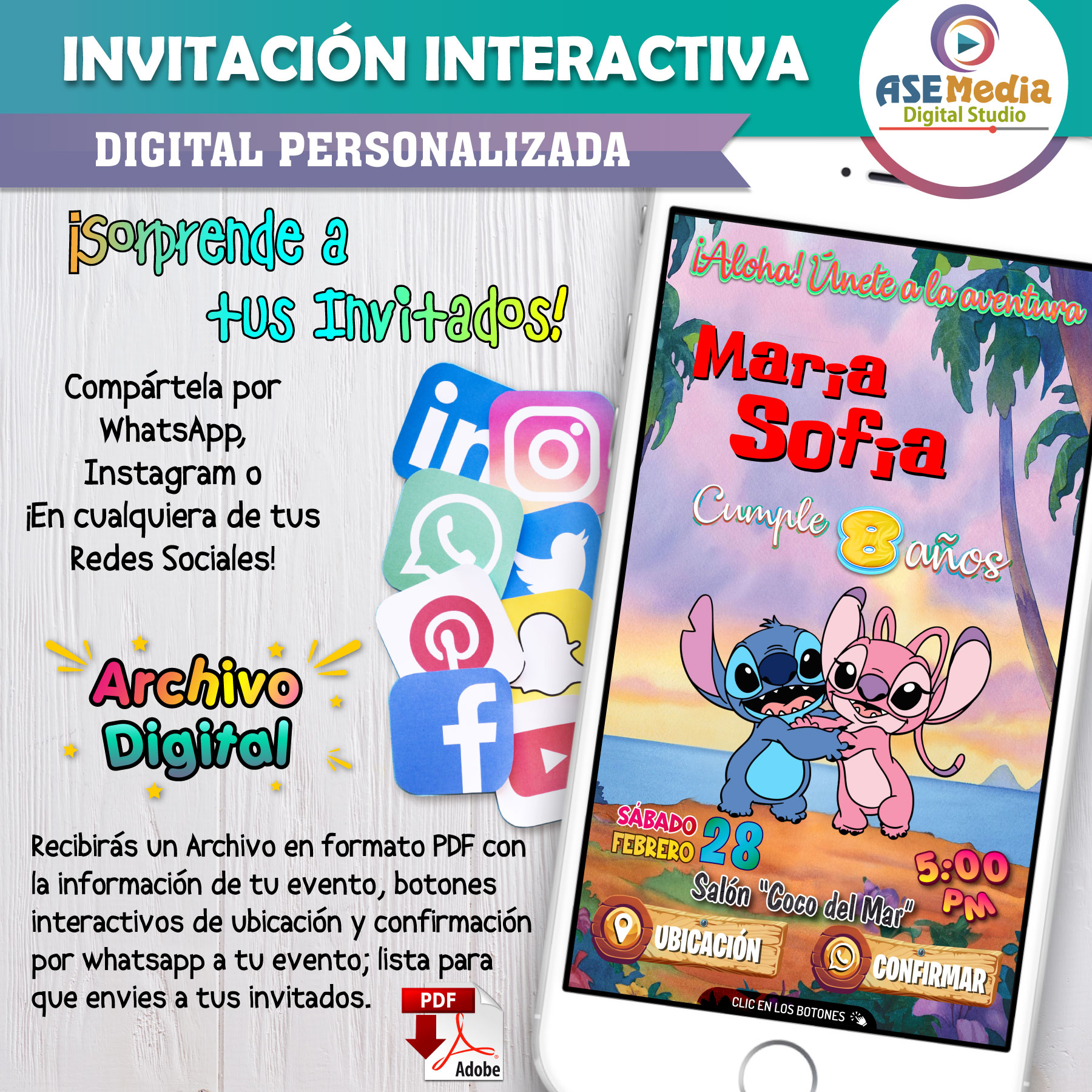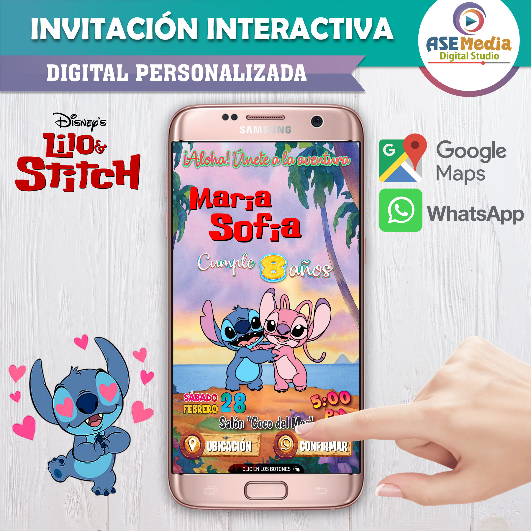 Stitch y Angel – Invitación Interactiva de Cumpleaños para WhatsApp