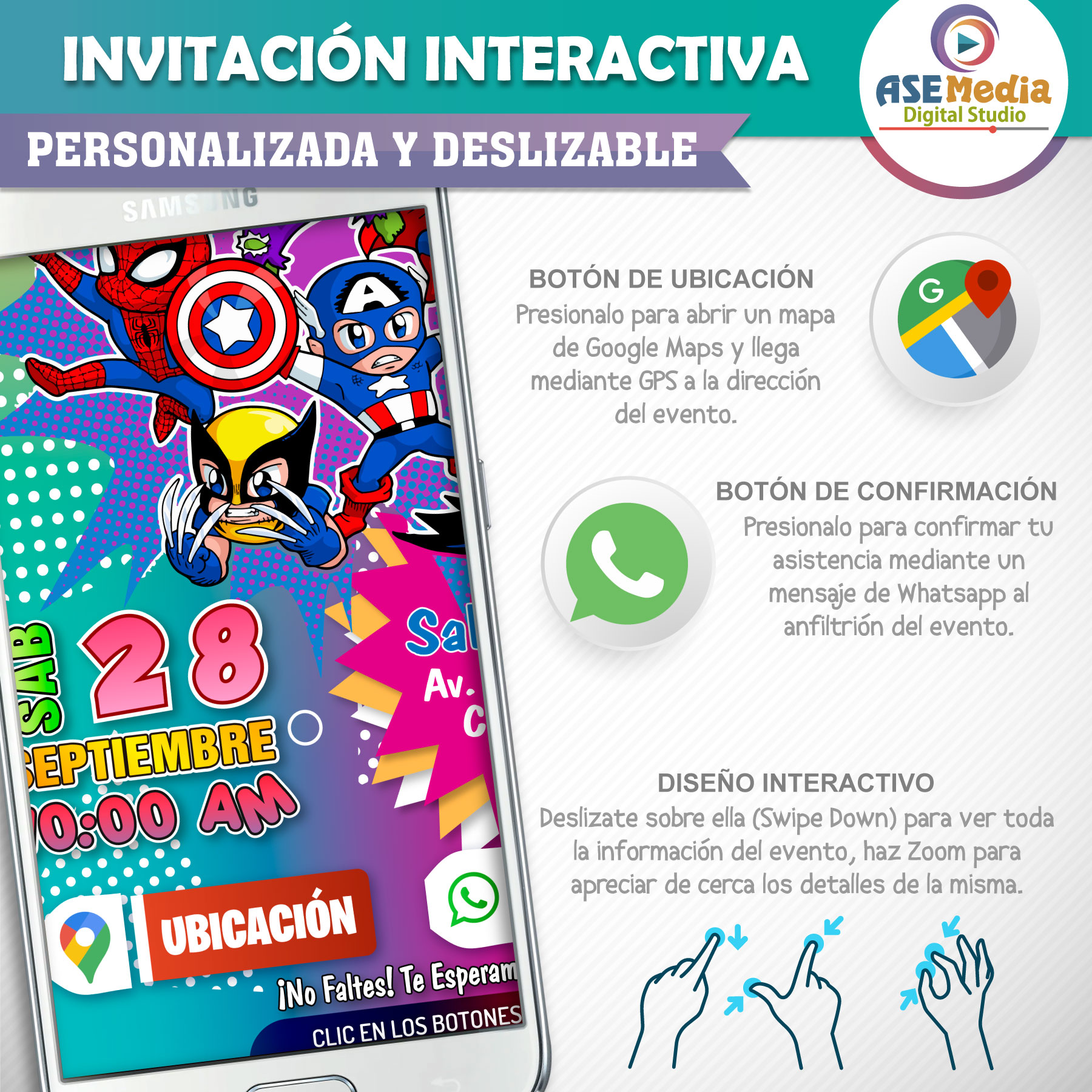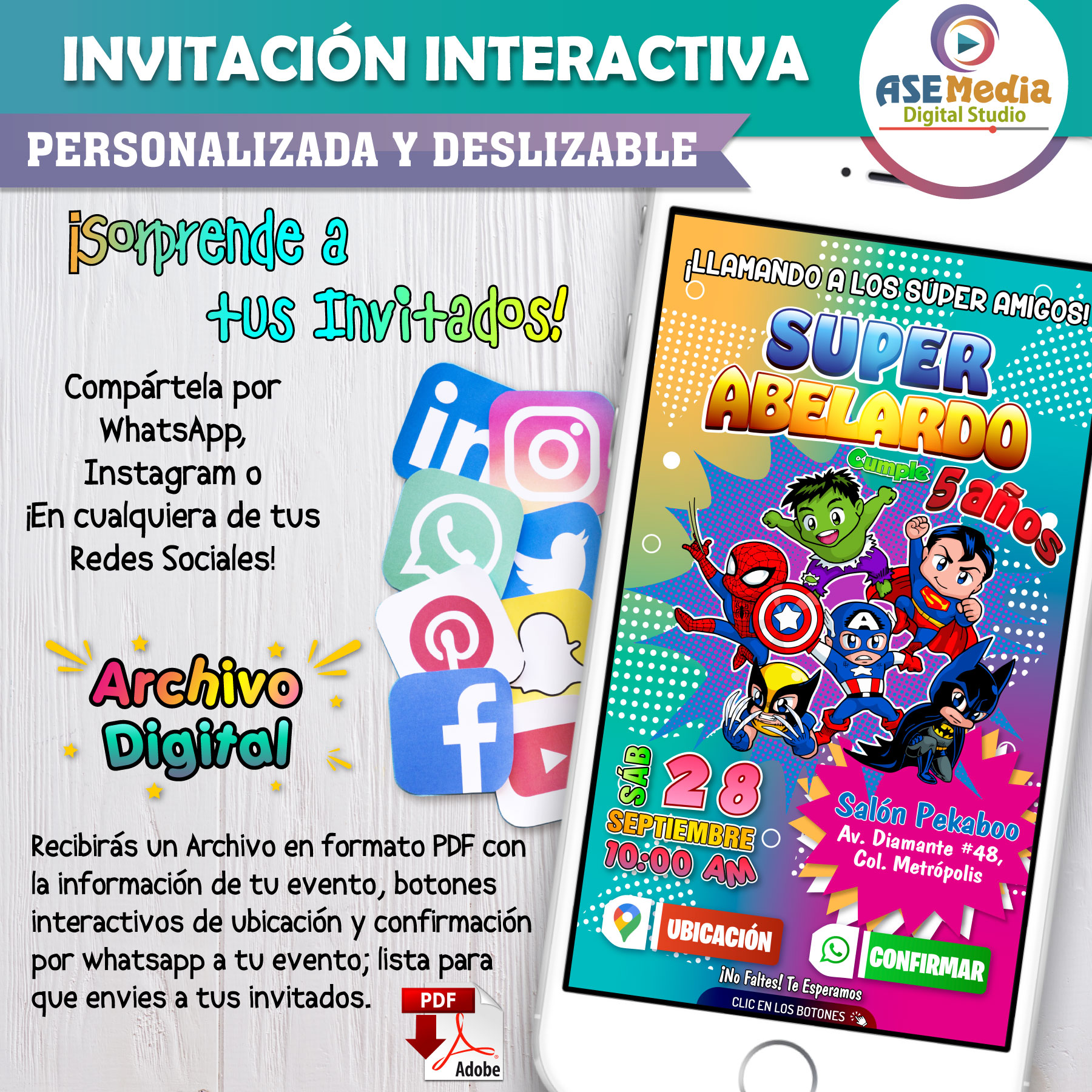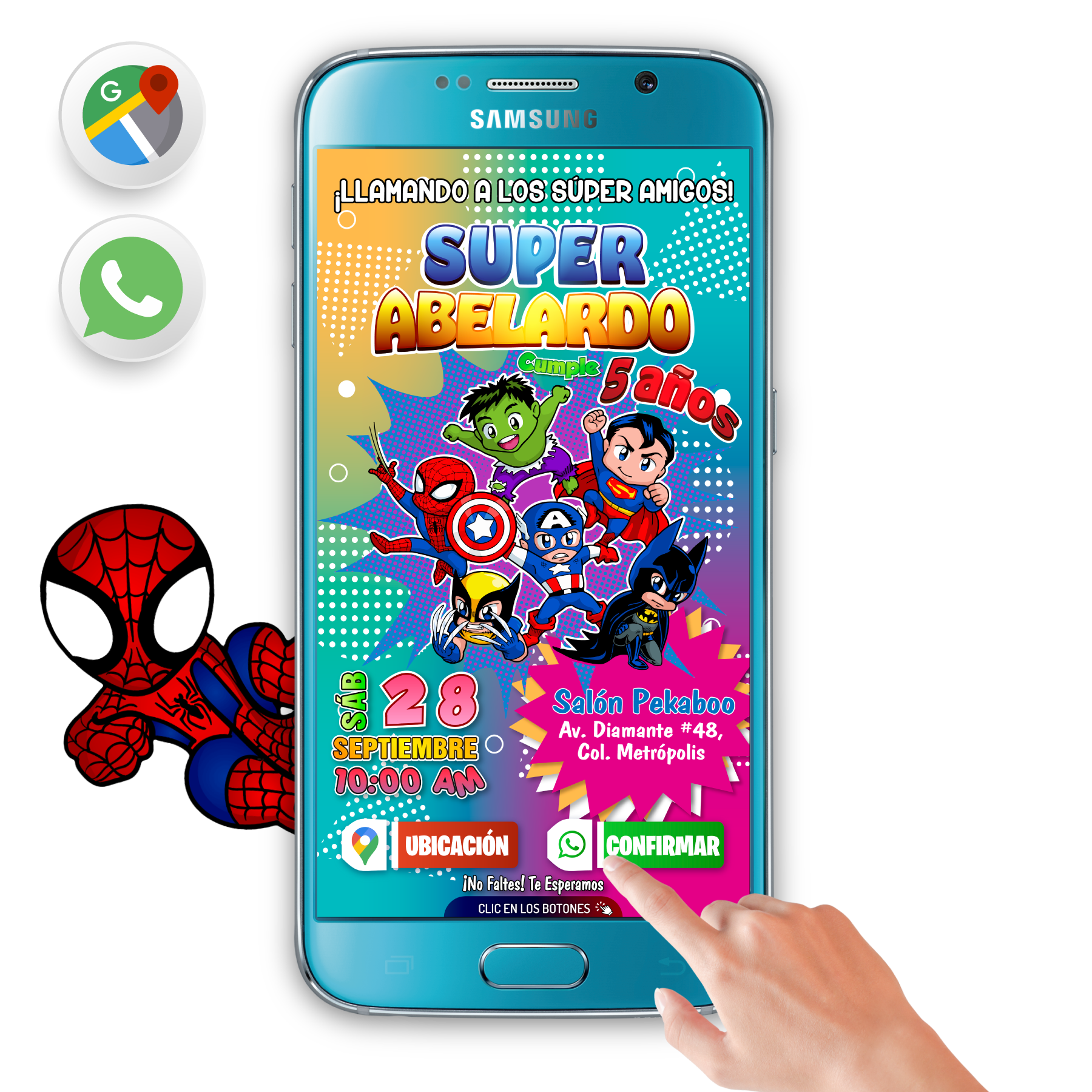Súper Héroes Amigos – Invitación Interactiva de Cumpleaños para WhatsApp