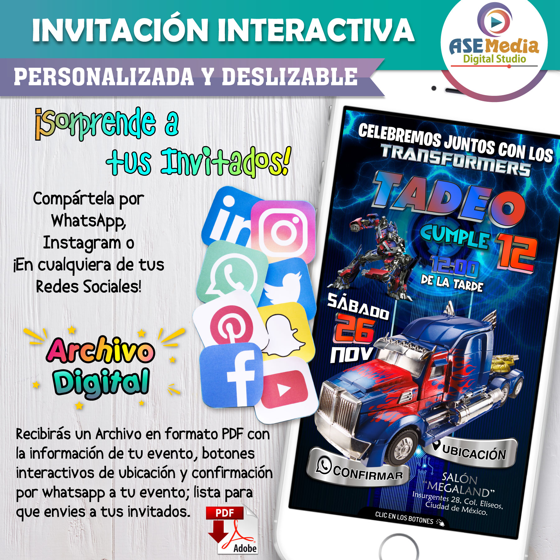Transformers Optimus Prime 02 – Invitación Interactiva de Cumpleaños para WhatsApp